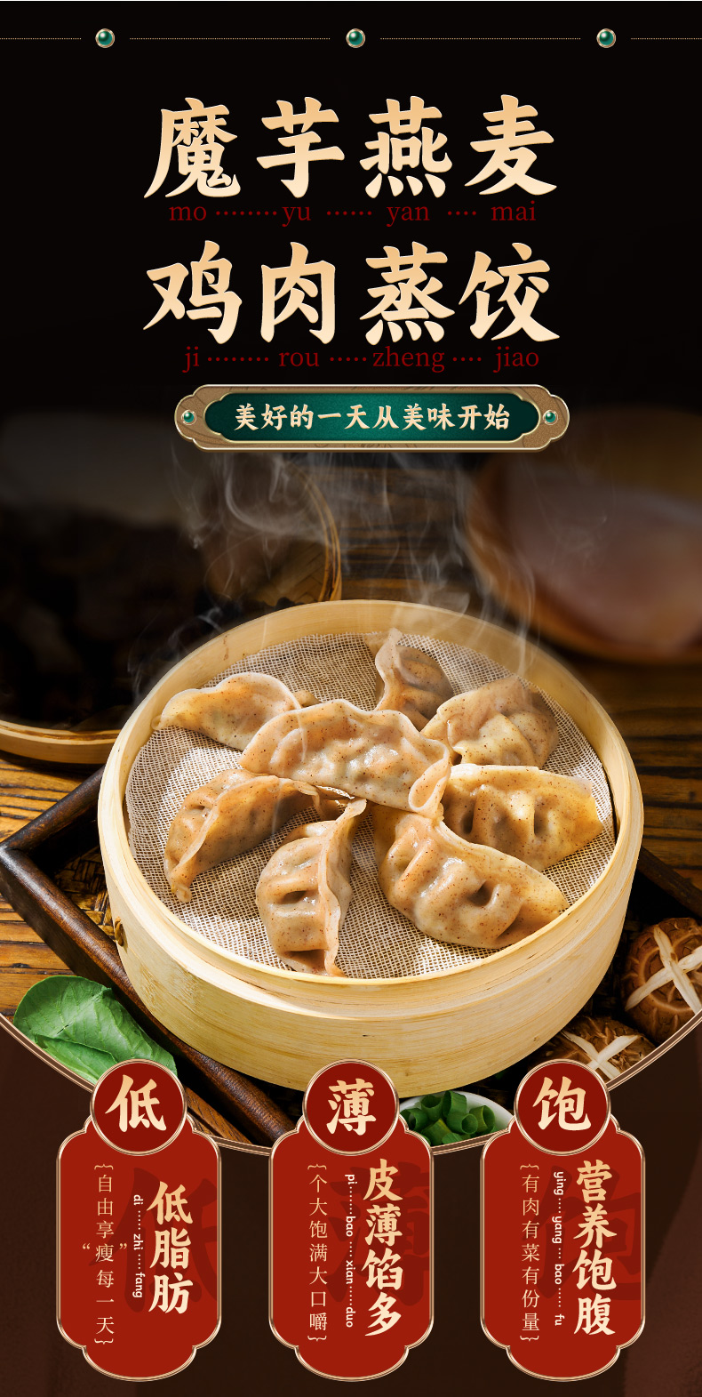 魔芋燕麦鸡胸肉蒸饺低脂代餐轻食速食荞麦早餐包子饺子水煎饺