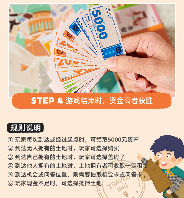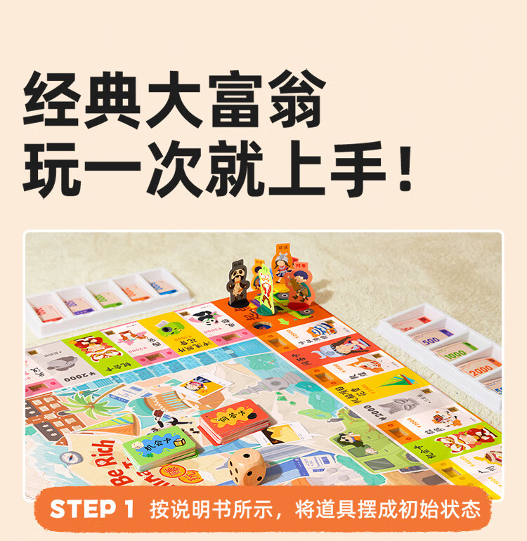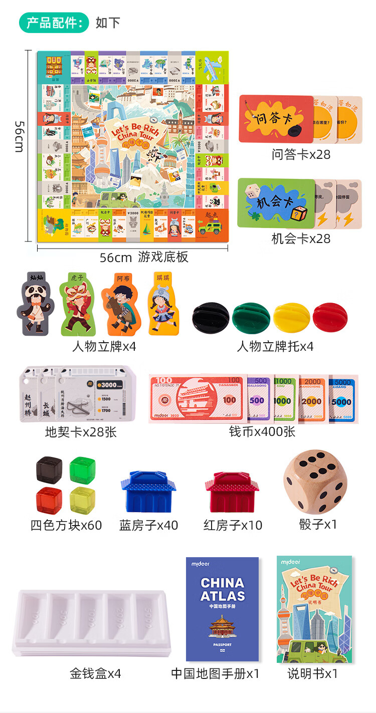 弥鹿(MiDeer)大富翁多人游戏棋六一儿童节礼物61中国儿童成人卡牌桌游豪华版