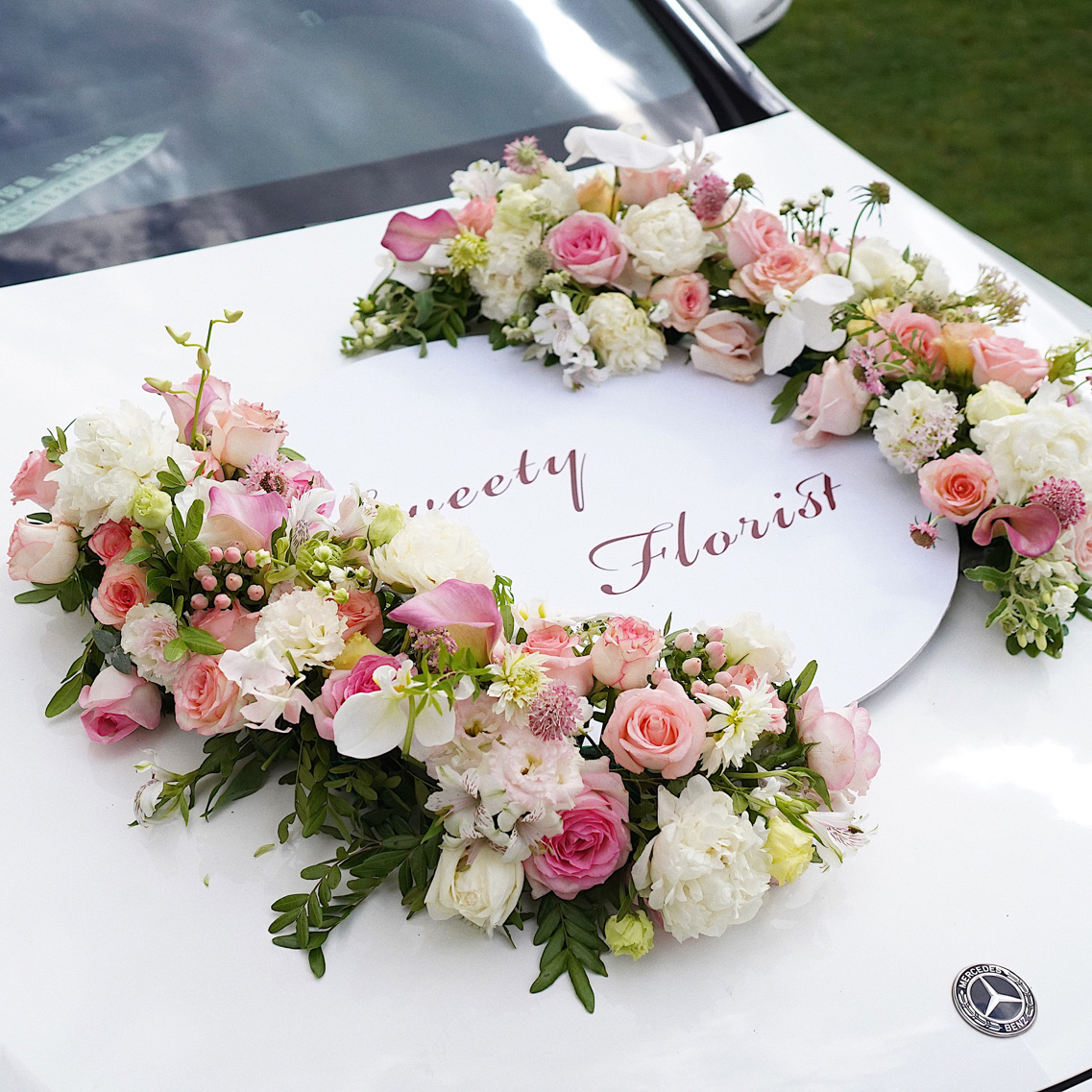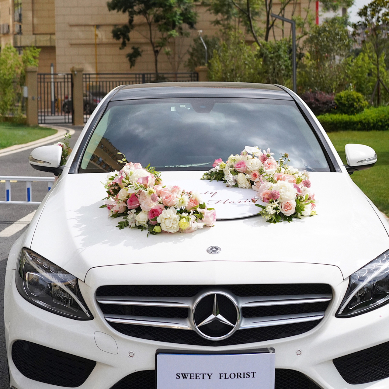 《带灯樱花粉网红熊》PE仿真花熊带灯款