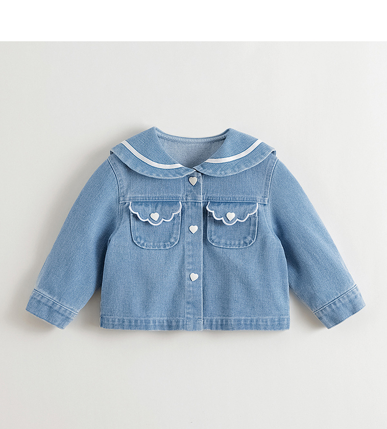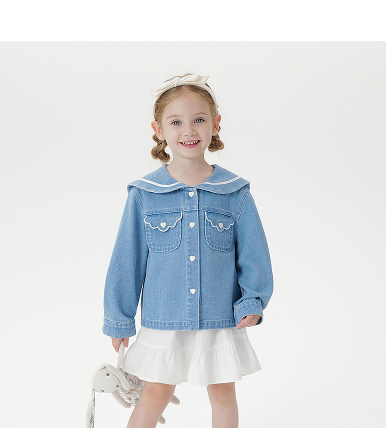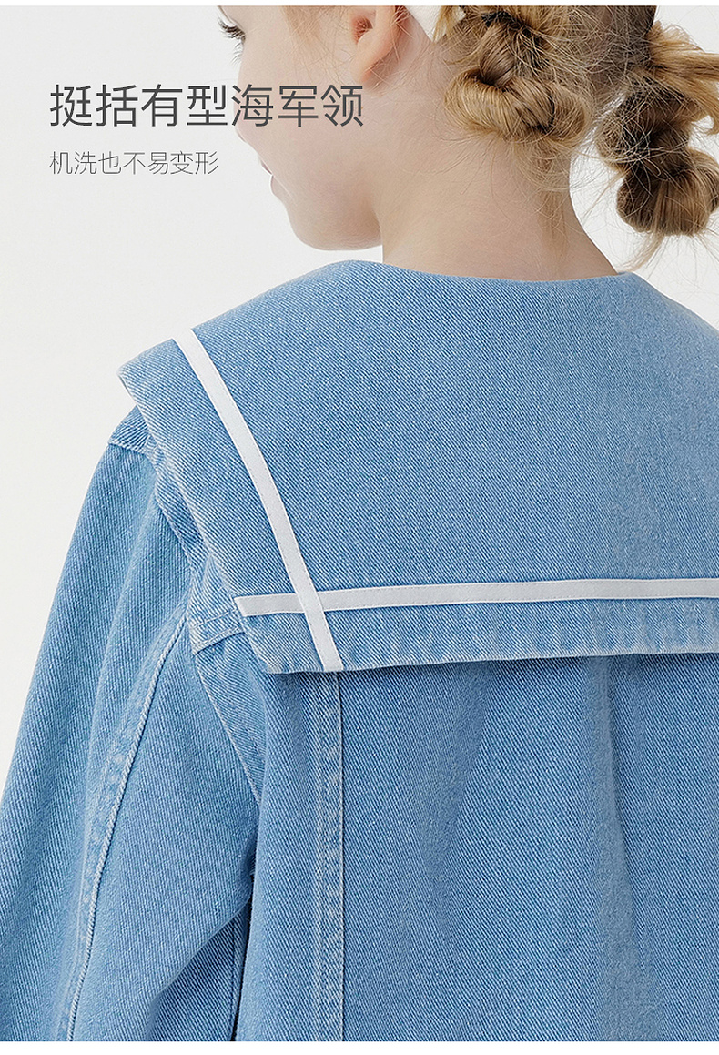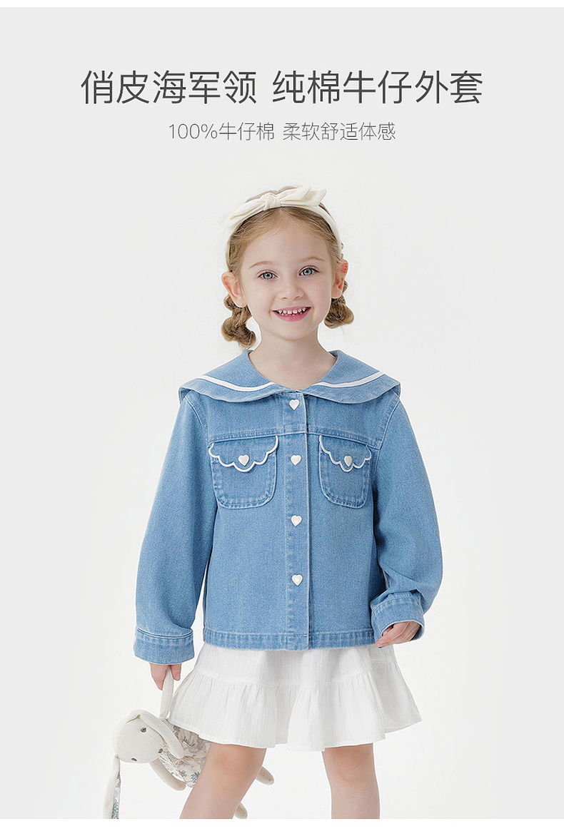 马克珍妮女童元气海军领纯棉牛仔外套2025年秋装新款551510