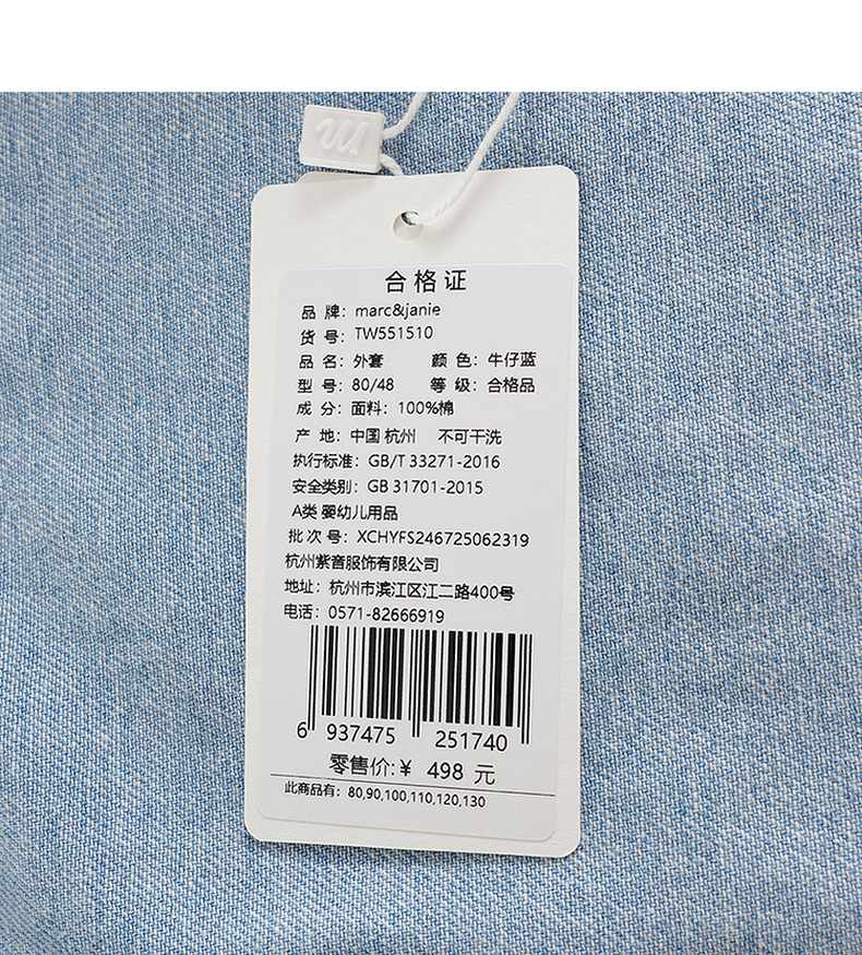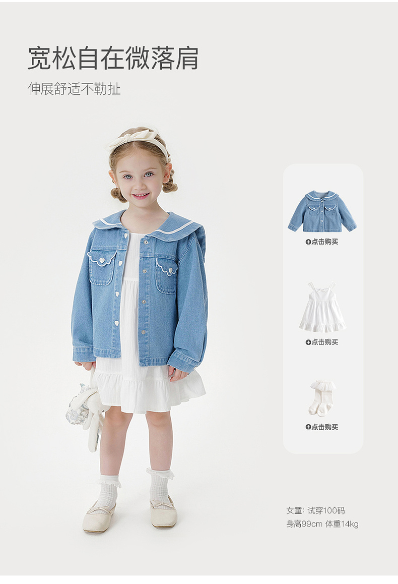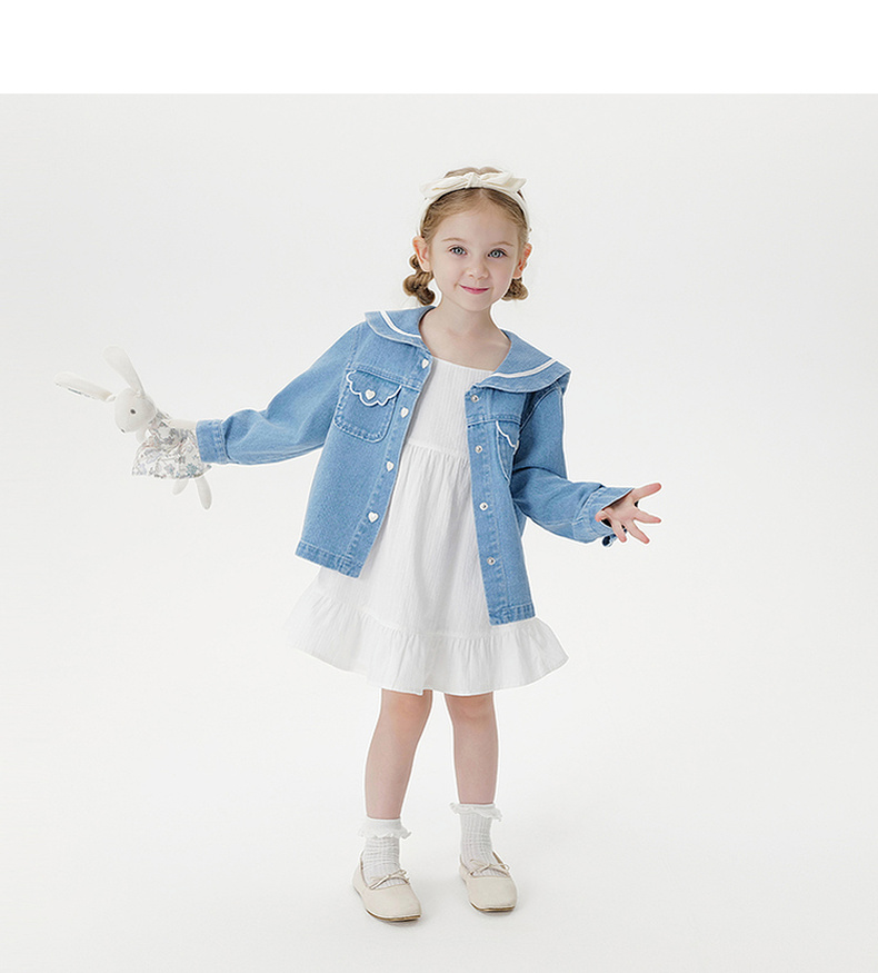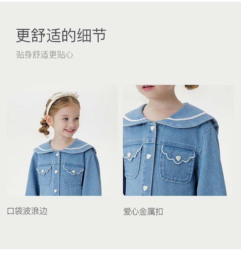 马克珍妮女童元气海军领纯棉牛仔外套2025年秋装新款551510