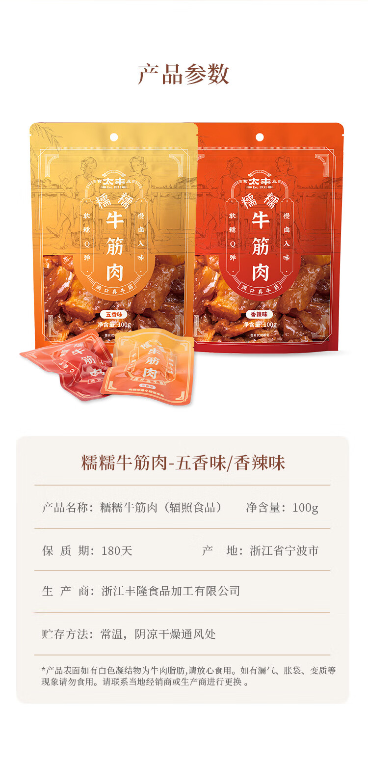太丰糯糯牛筋肉100g 即食筋头巴脑蹄休闲零食解馋小吃卤味肉干