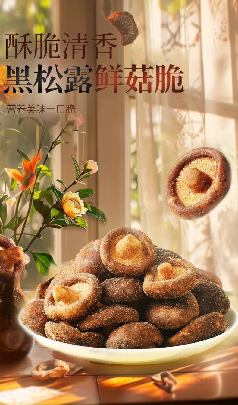 【酥脆鲜香❗黑松露鲜菇脆片】甄选品质原料制作,高品质鲜菇,来自大自然的馈赠,即食香菇非油炸蔬菜,休闲蘑菇小零食批发网红L