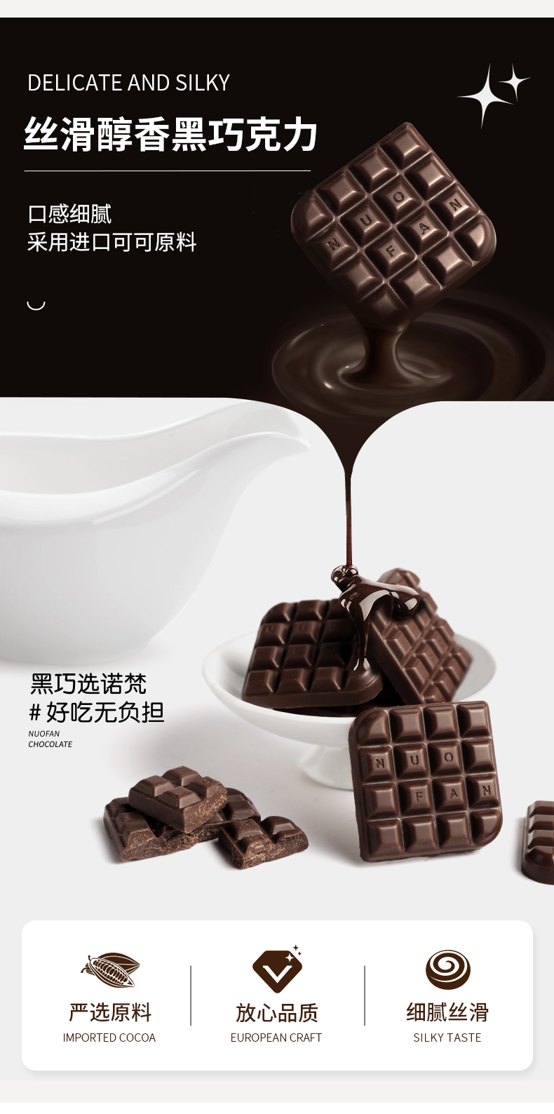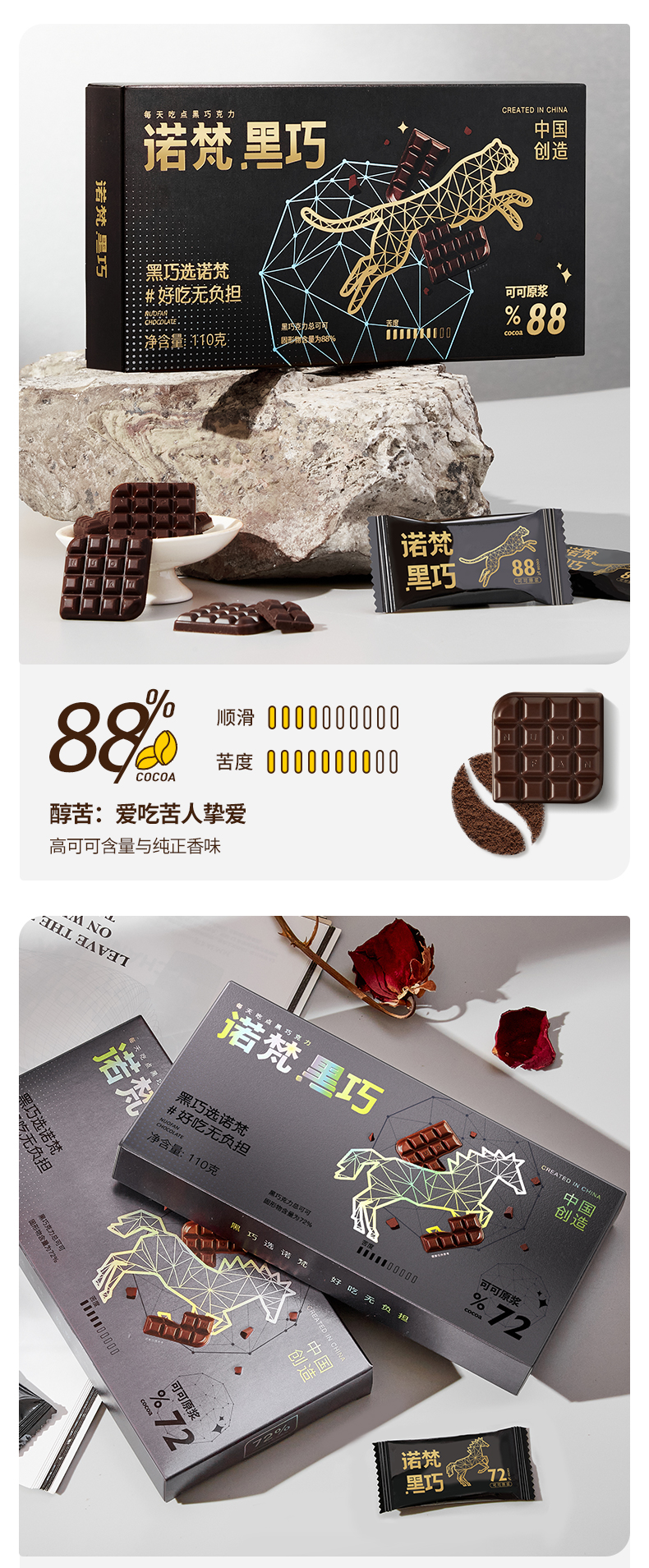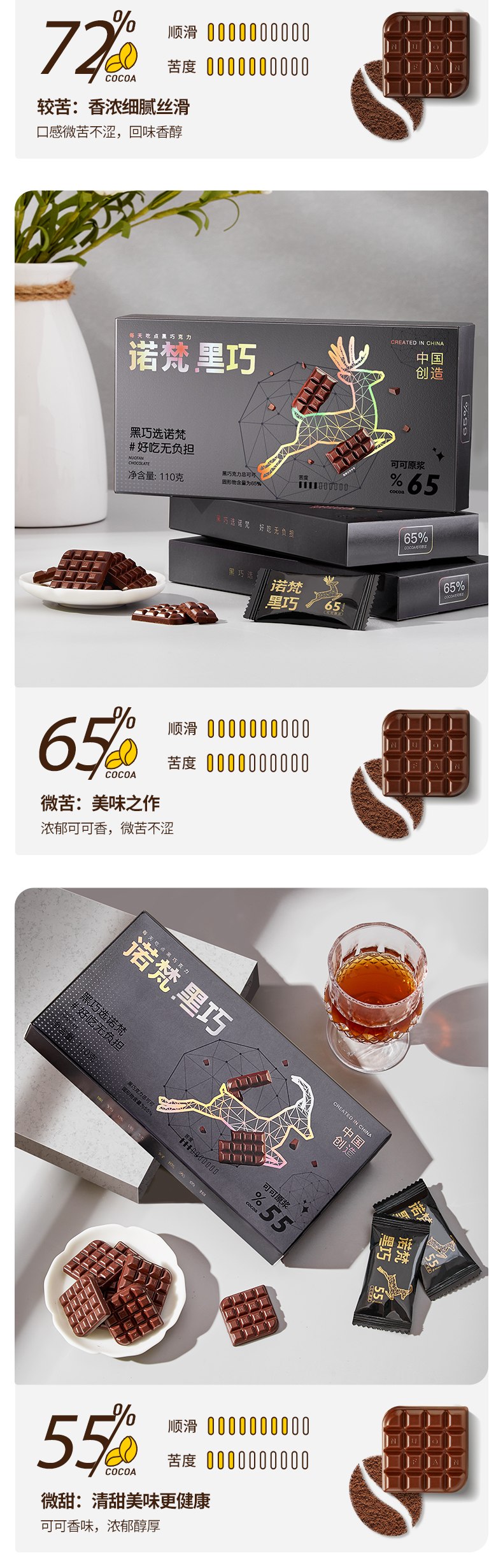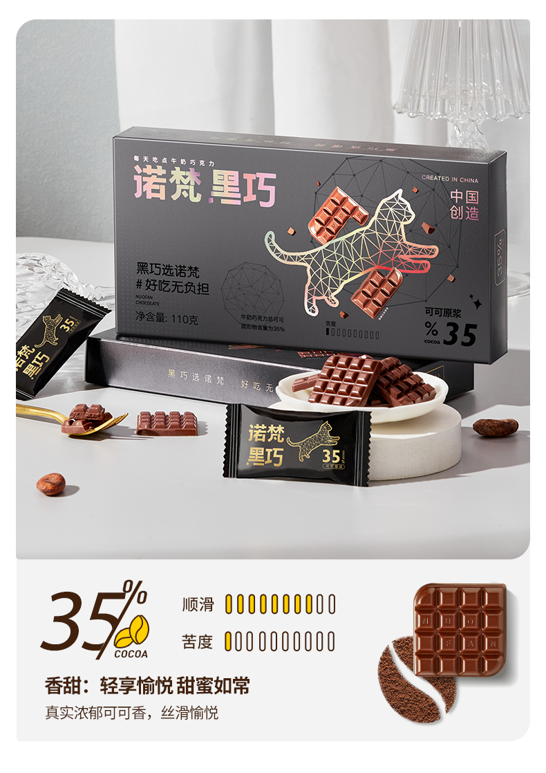 【会员专享】诺梵72%每日纯黑巧克力礼盒装可可脂散装纯脂休闲烘焙零食送女友