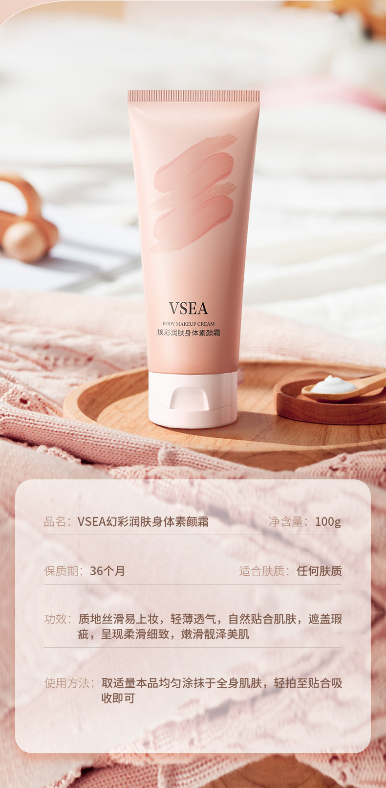 「19.9到手4支!抖音同款」VSEA焕彩润肤身体素颜霜 轻薄遮瑕补水防水奶油肌素颜霜全身可用不假白美容护肤