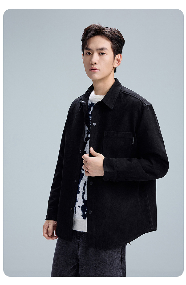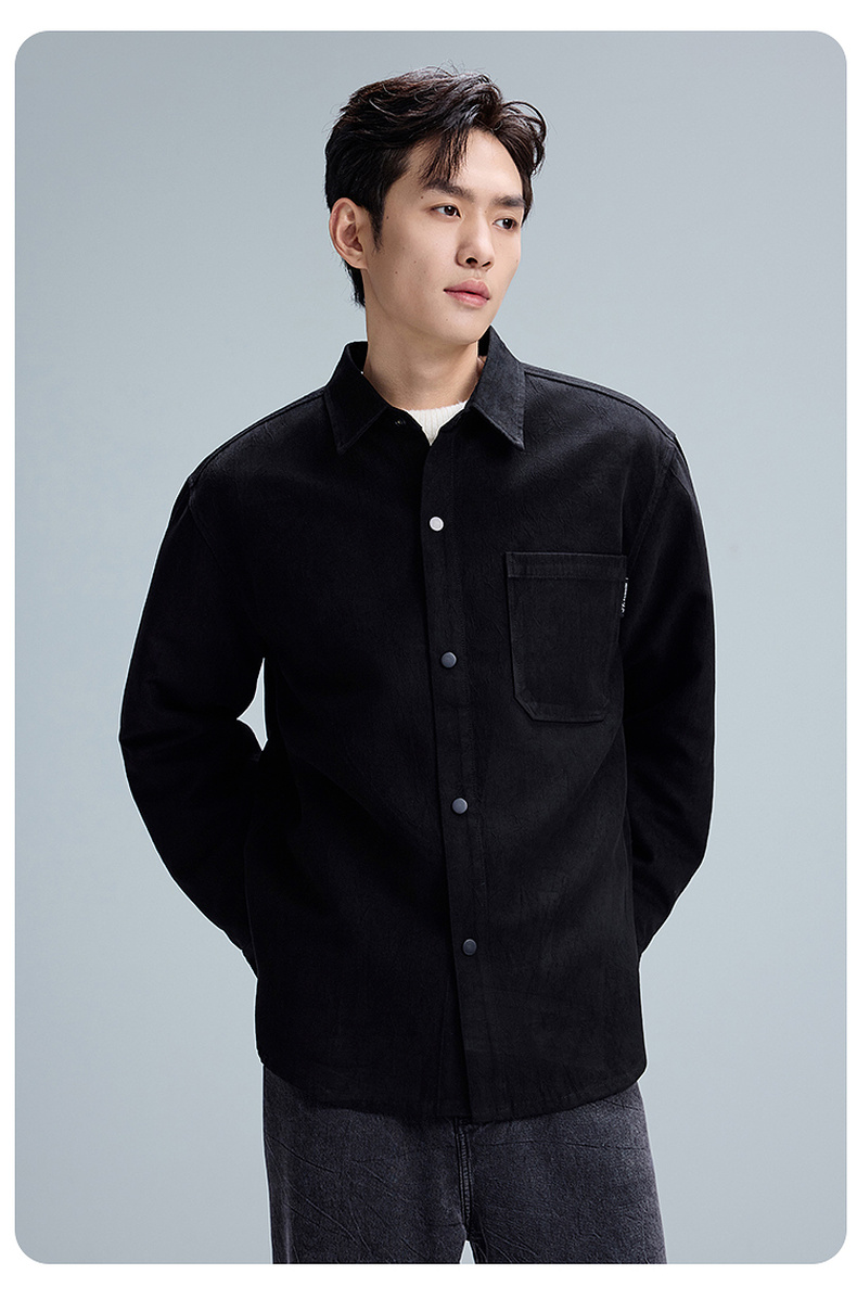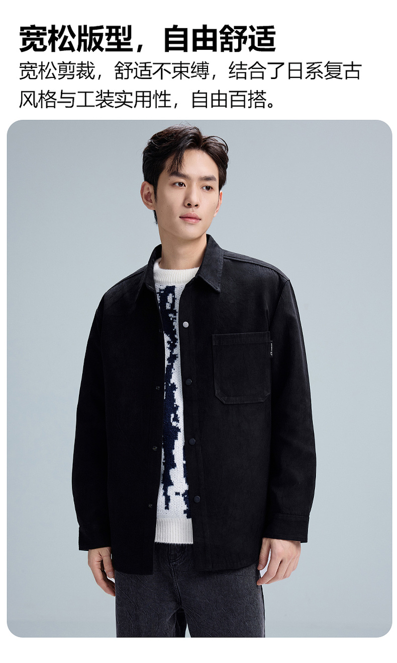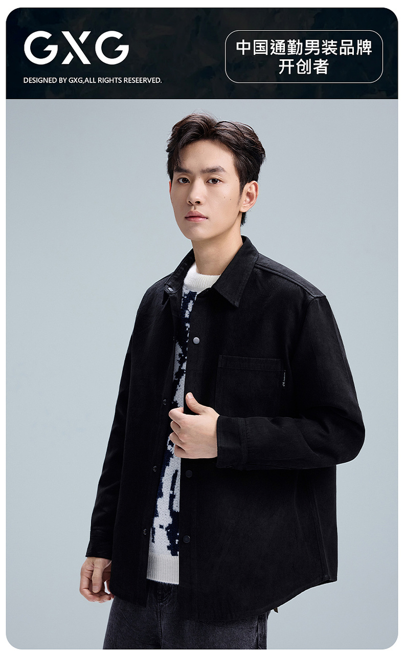 GXG男装25秋季日系复古简约翻领户外休闲宽松百搭男式长袖衬衫K&C