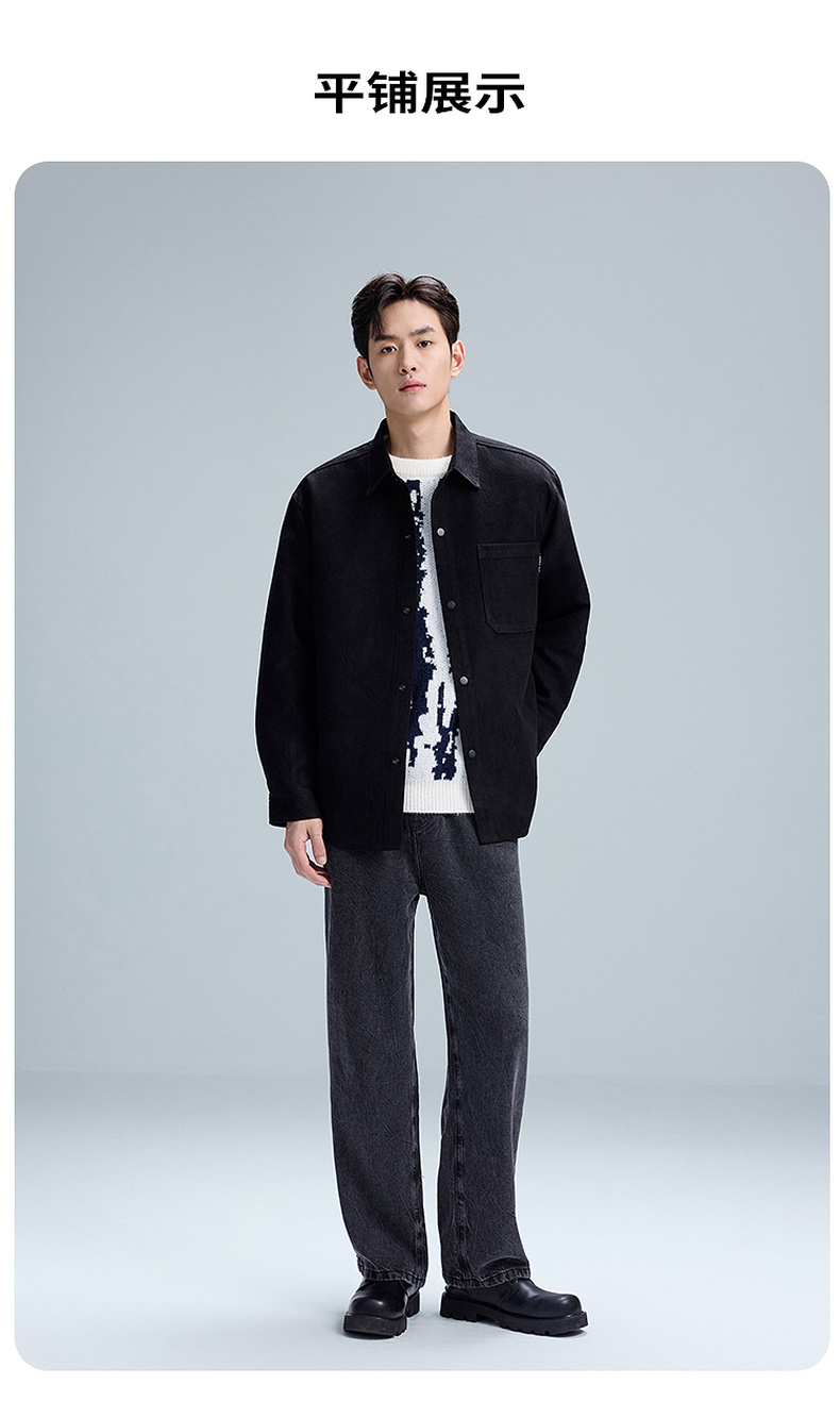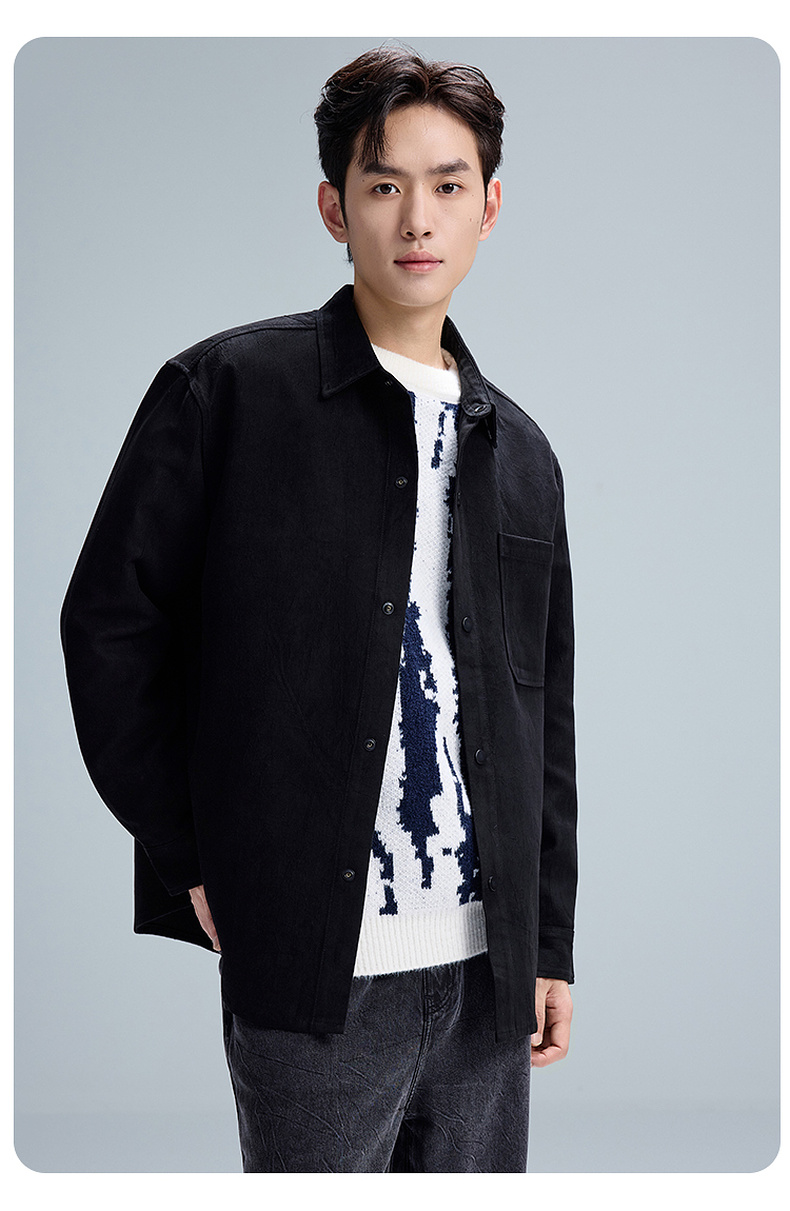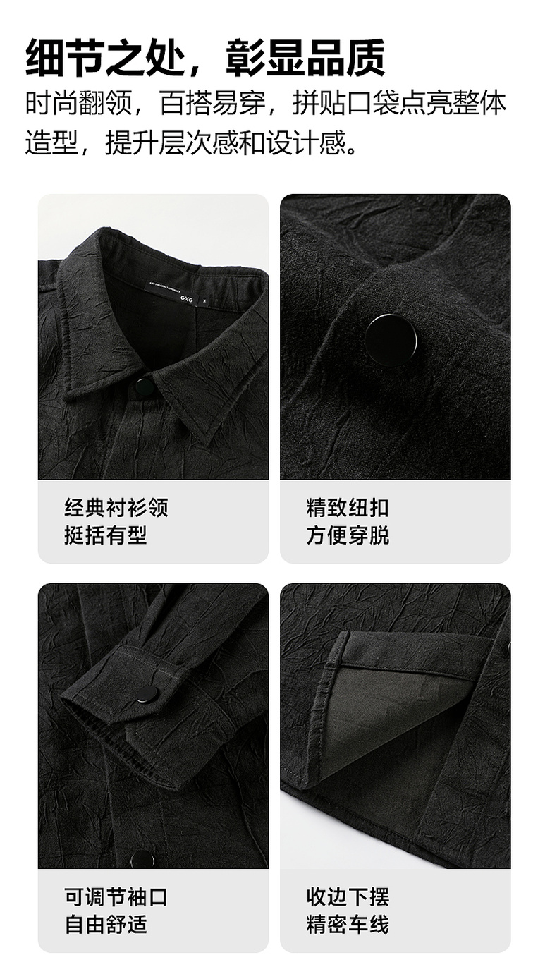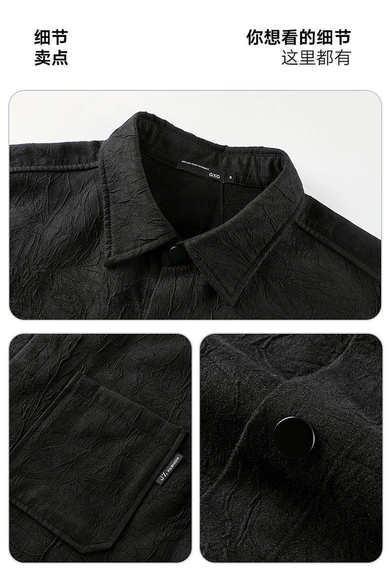 GXG男装25秋季日系复古简约翻领户外休闲宽松百搭男式长袖衬衫K&C