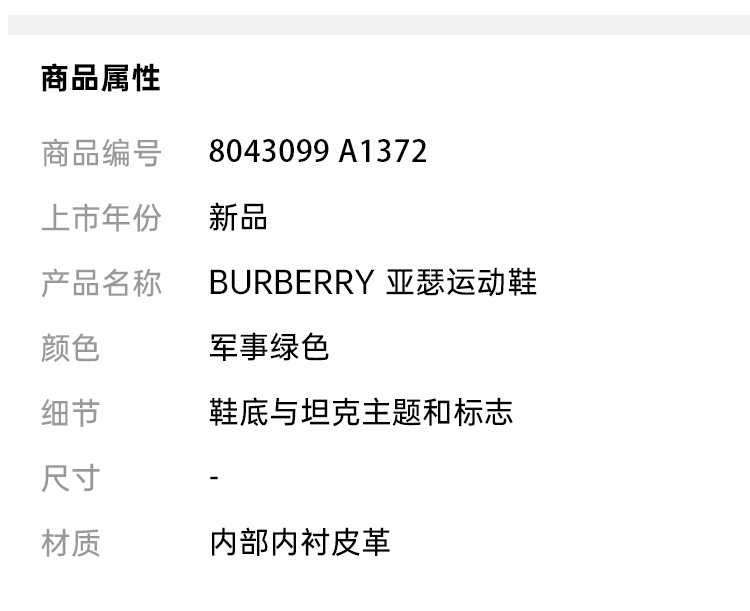 BURBERRY 博柏利 格纹棉质 Arthur 运动鞋 军绿小格子 男士休闲鞋 格子 8043099 A1372