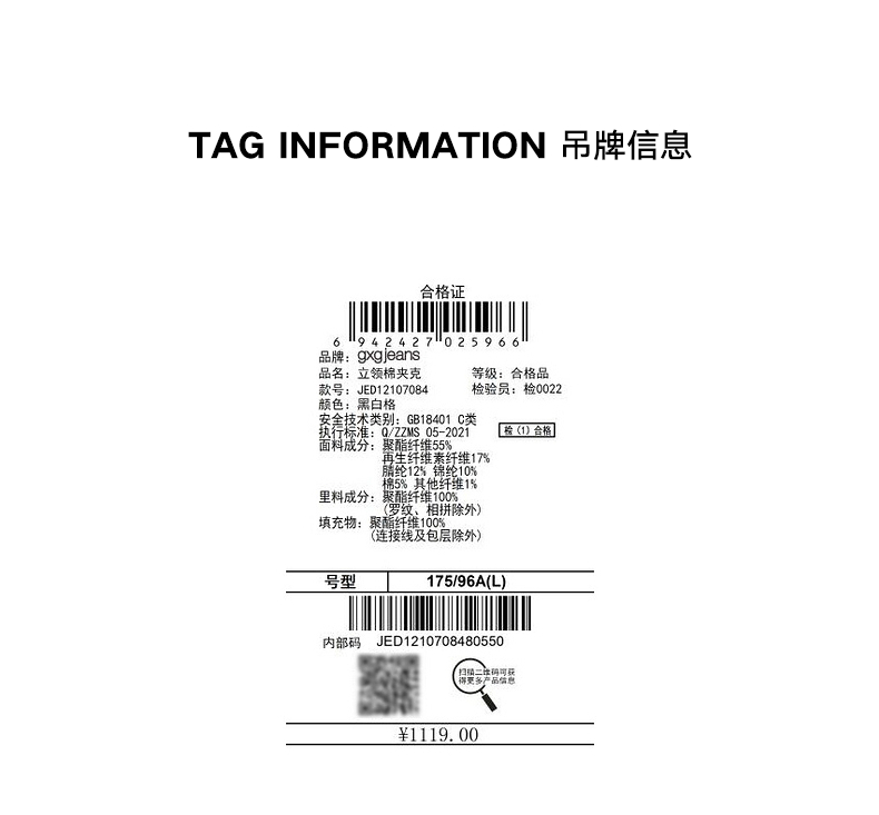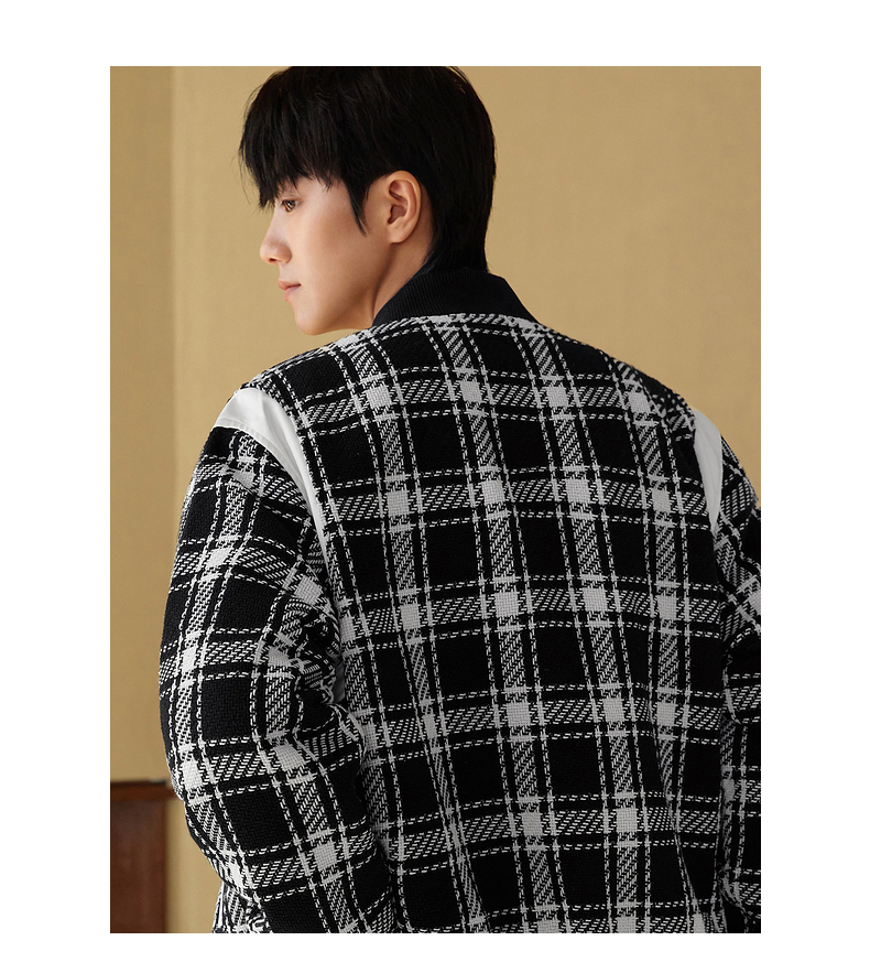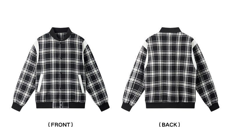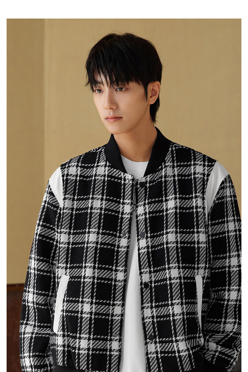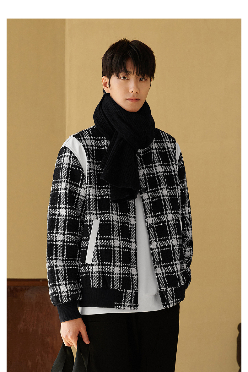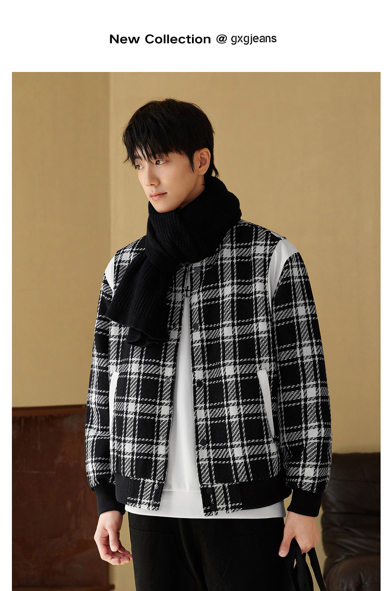 gxgjeans男装冬季黑白格子夹克棒球服保暖夹棉夹克外套男棉服