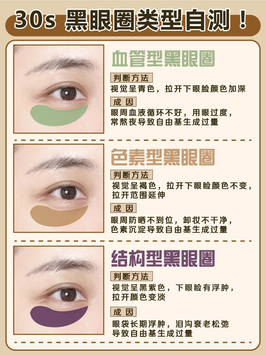 🟤棕色色素型:眼周防晒不到位,卸妆不干净导致的色素沉淀
