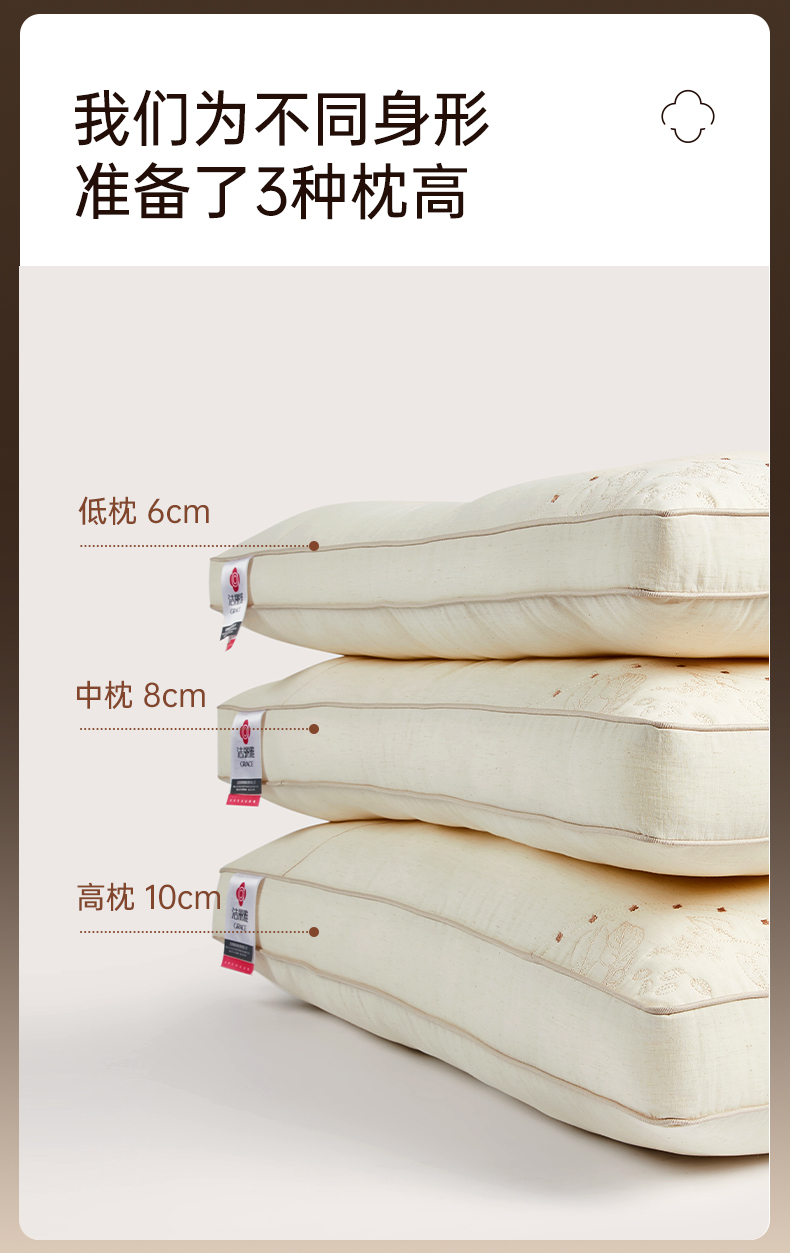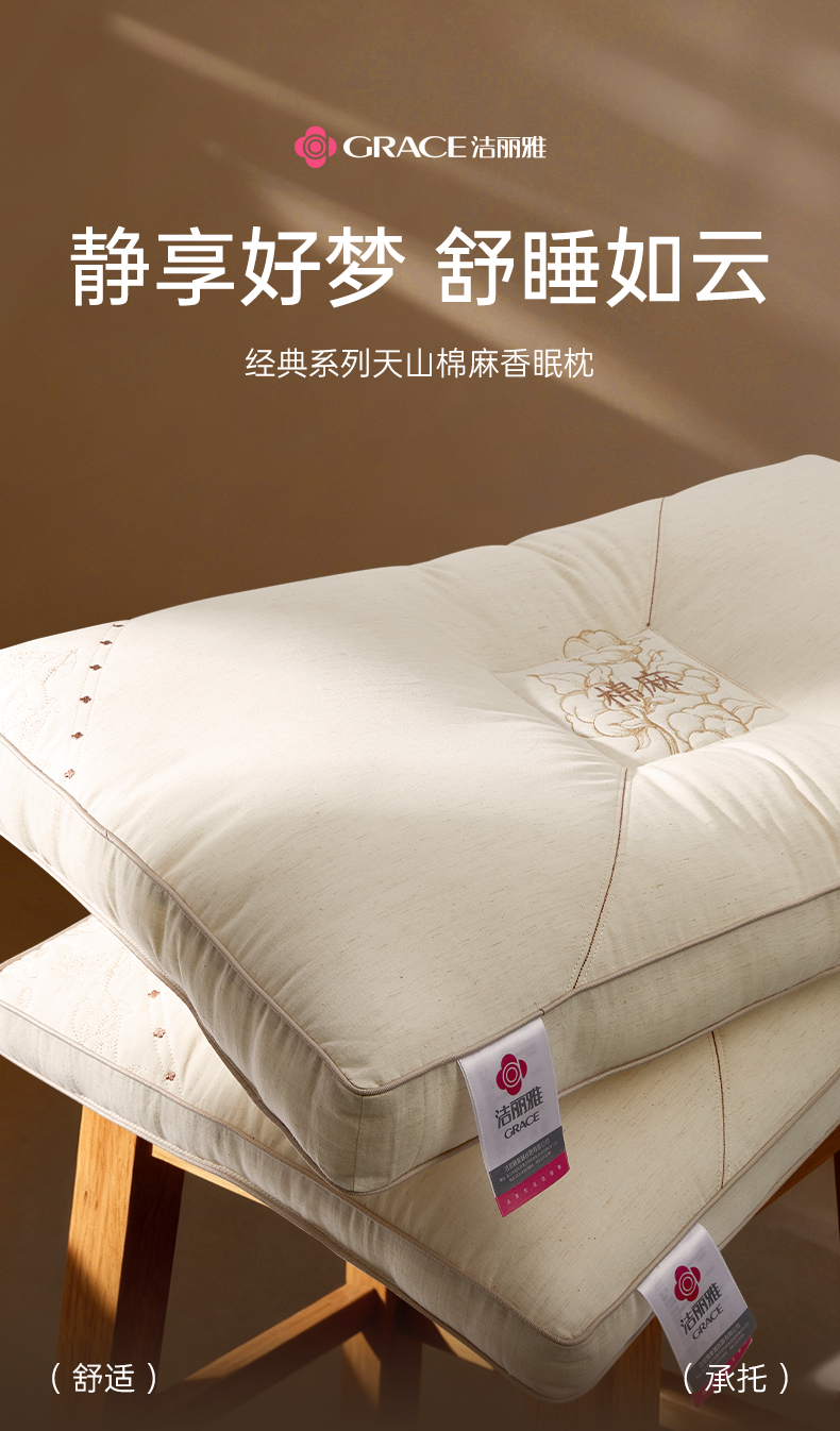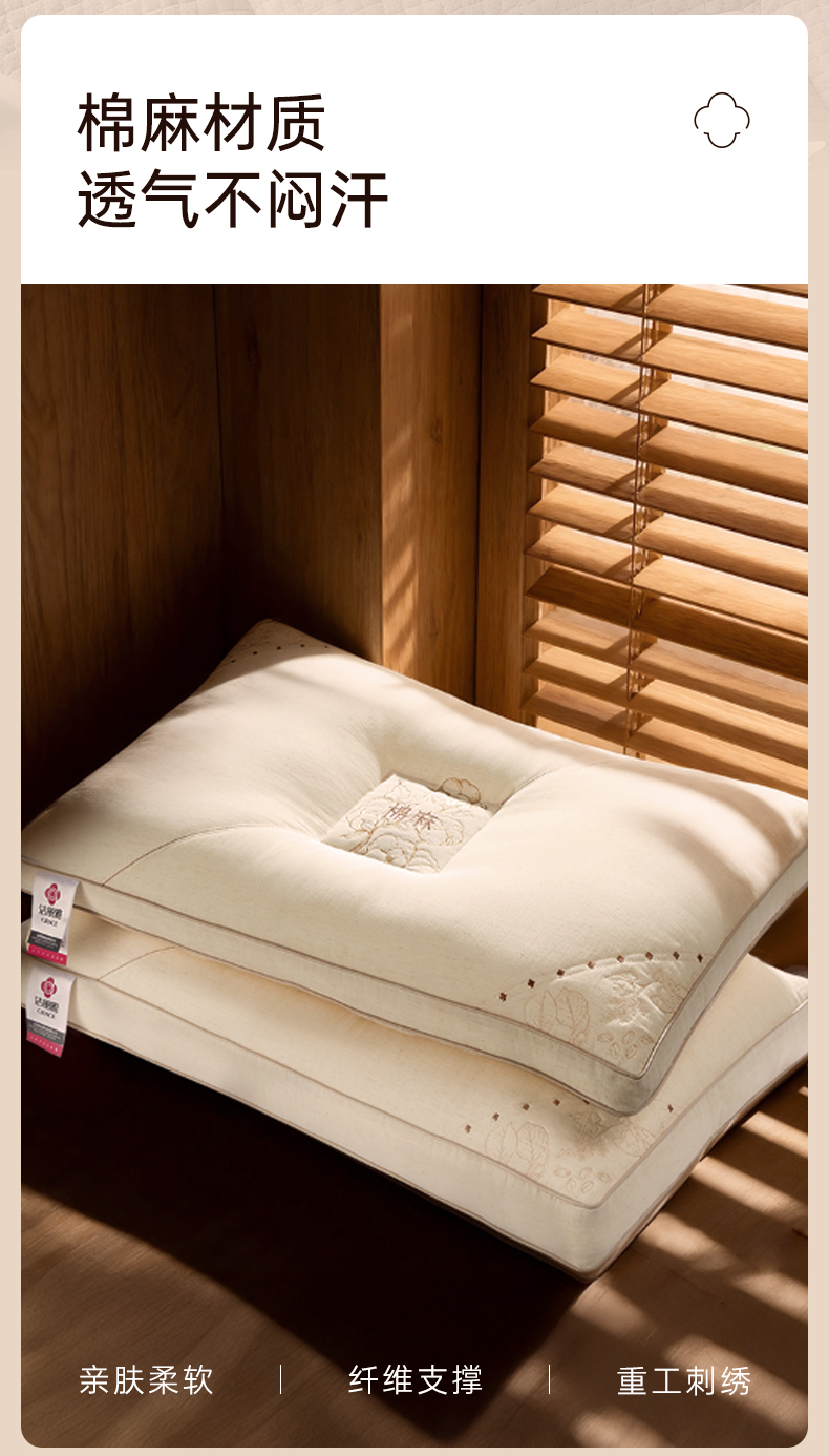 洁丽雅天山棉麻香睡枕分区按摩枕草本助眠柔软亲肤枕头家庭成人枕