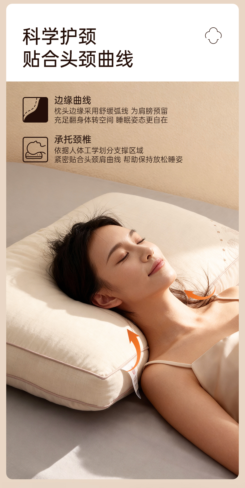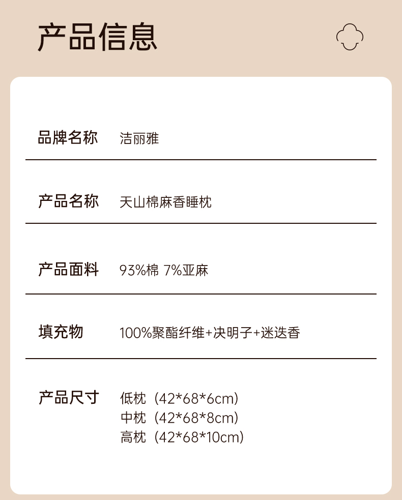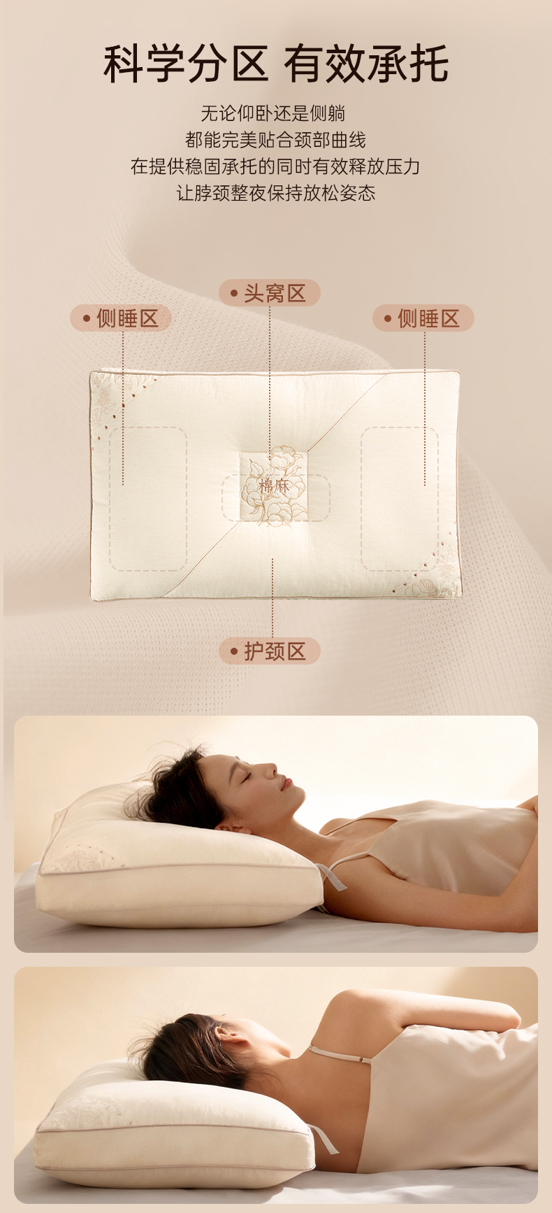 洁丽雅天山棉麻香睡枕分区按摩枕草本助眠柔软亲肤枕头家庭成人枕