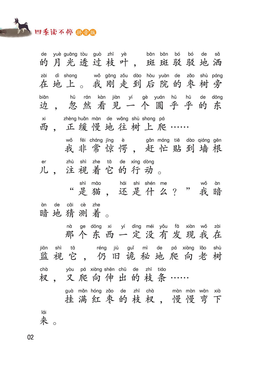 “四季读不停”系列是著名作家宗介华的作品,展示的是一个生长在五六十年代、家境贫寒的我国北方农村儿童的真实生活。在变幻莫测的春夏秋冬里,既有作者本人与众多小伙伴的喜怒哀乐,也有对乡土文化的真情实感;既有对田野鸟兽的热情拥抱,也有对山川河流的美好歌颂。文笔优美,情感真挚,此次推出拼音版,由宗介华老师重新编选,附加后记。 《带刺的朋友》是秋季卷,精选《带刺的朋友》《谷地里的歌声》等篇目。《带刺的朋友》一文曾被北师大版、沪教版、人教版等多家出版社选入小学《语文》教材或同步阅读。