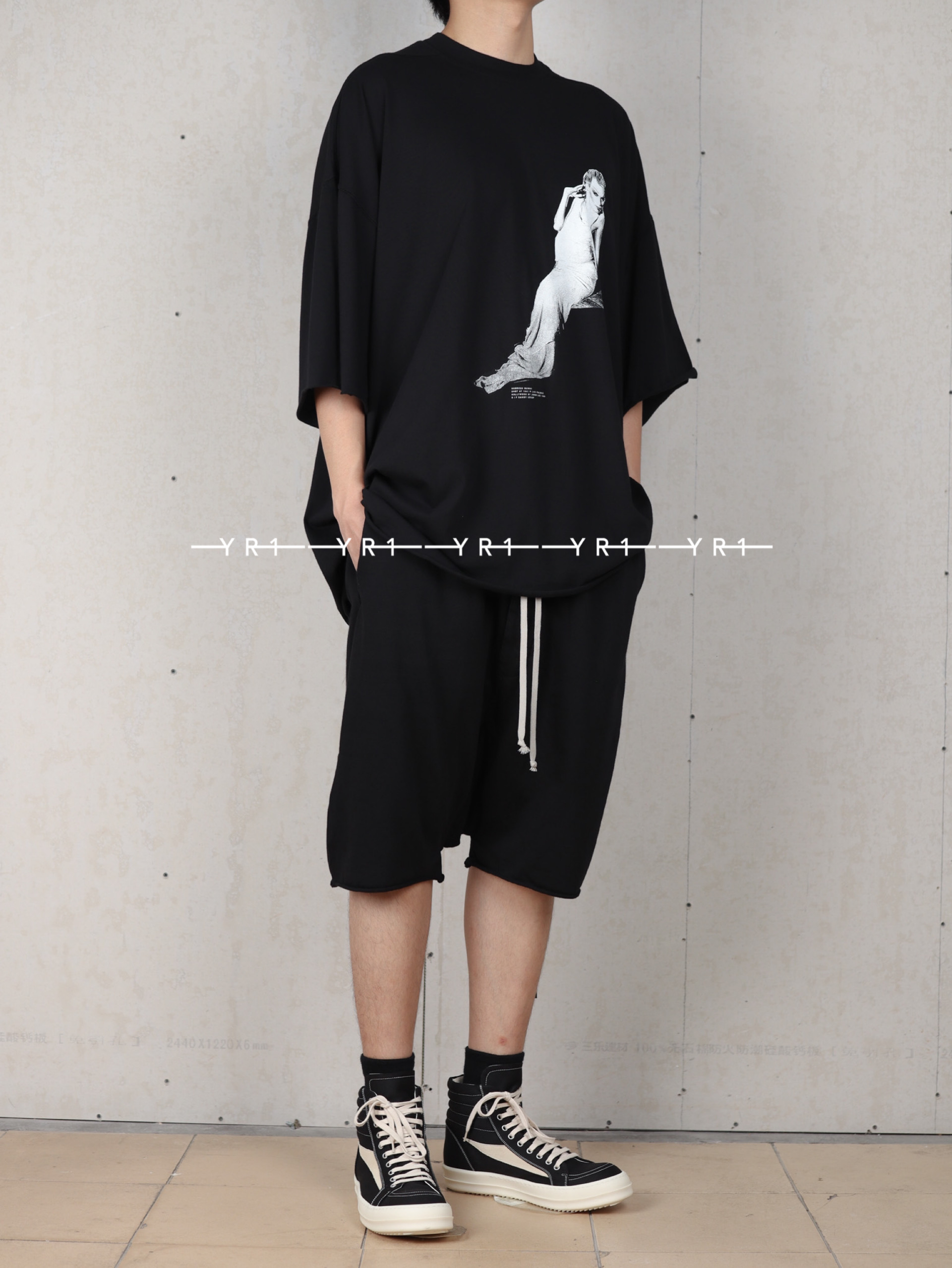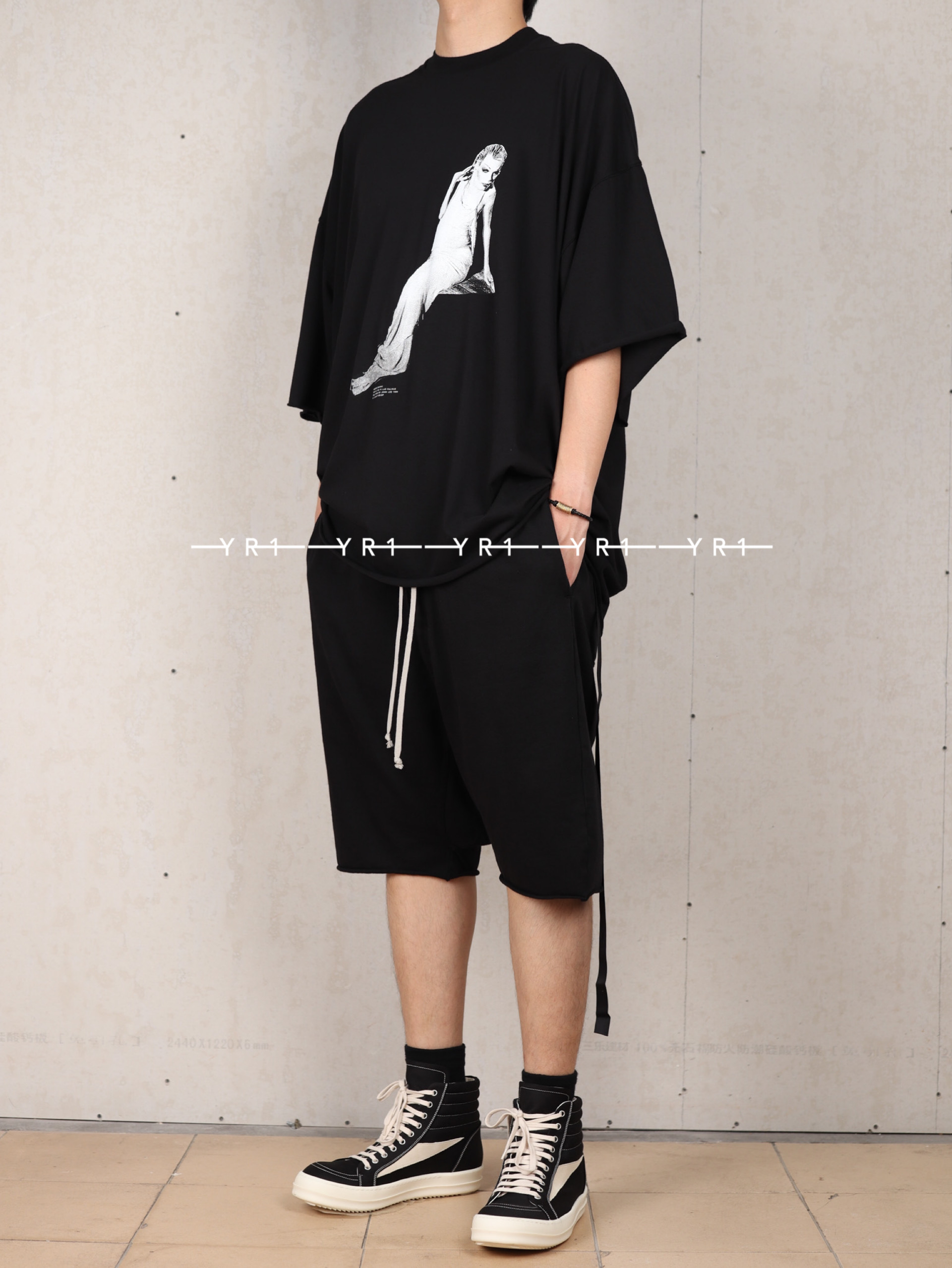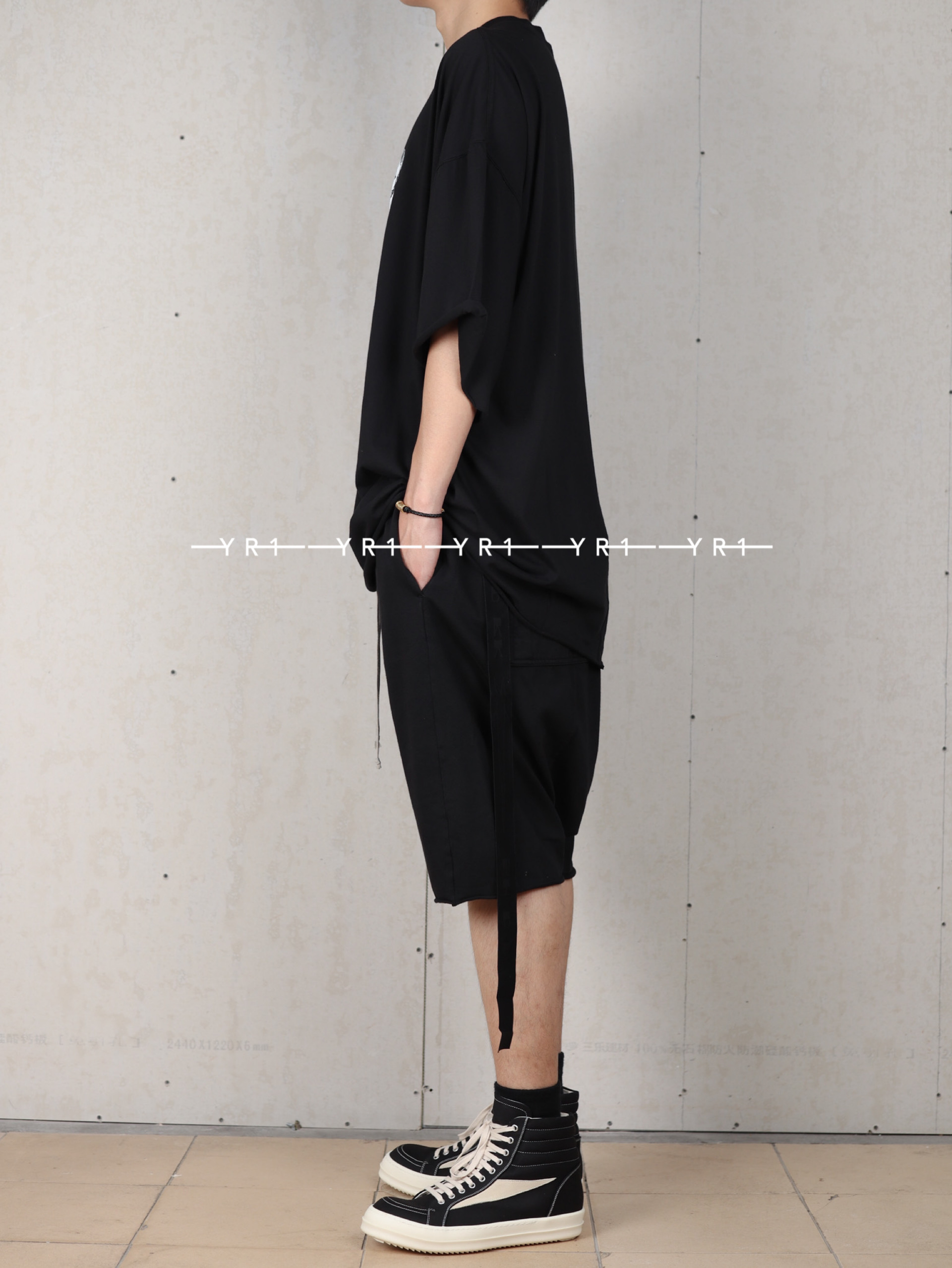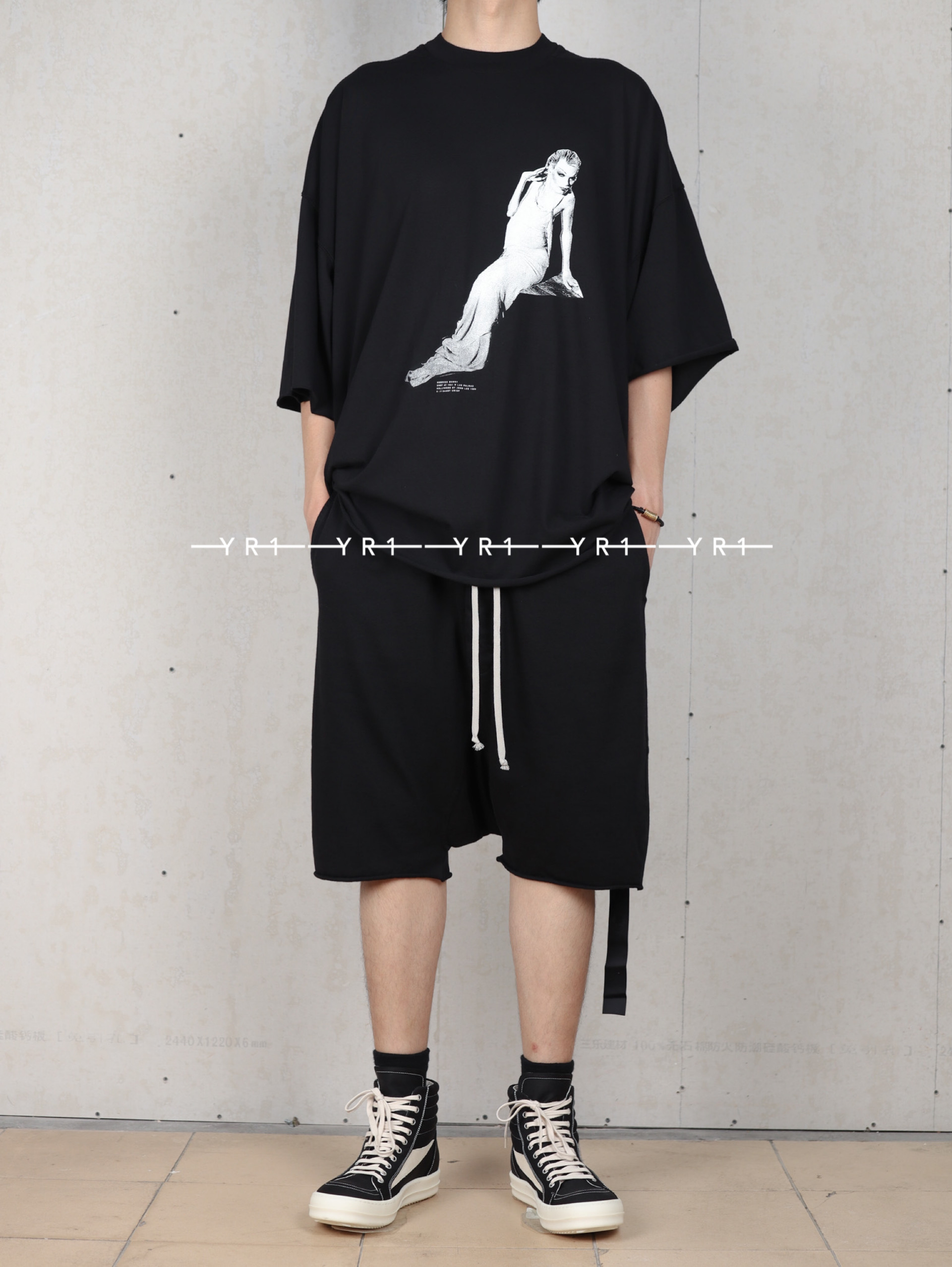 这些抽绳裤长度在膝盖以下,裤裆低垂。