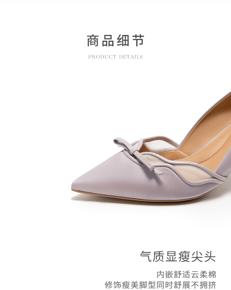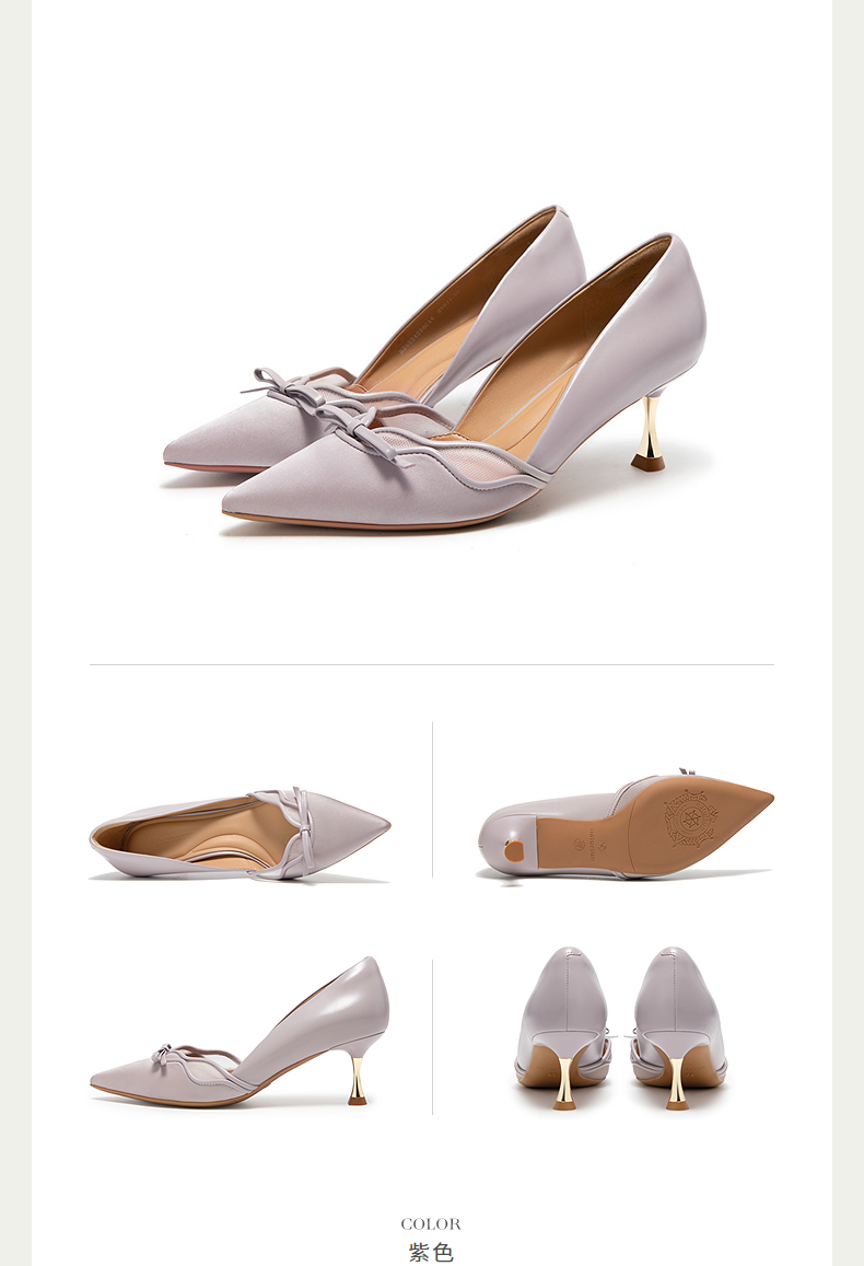 natursun尖头高跟鞋女小众设计蝴蝶结百搭细跟单鞋N25224236