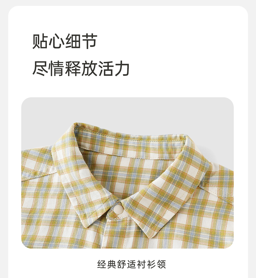 英氏儿童衬衫长袖春夏男童纯棉百搭休闲格子衫长袖衫YRCAJ1R009A