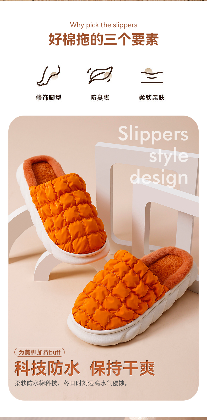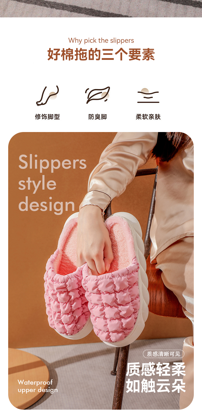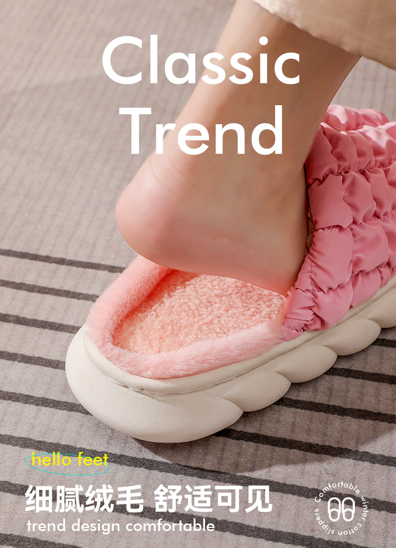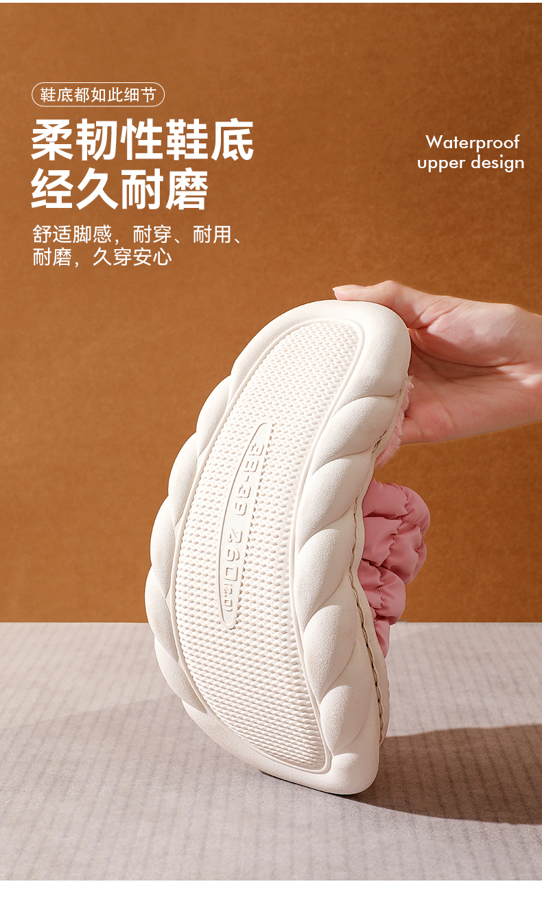 【新款网红毛绒踩屎感棉拖】波浪厚底防滑棉拖鞋 柔韧性鞋底经久耐磨 科技防水 保持干爽 细腻饱满绒毛 看得见的温暖 潮流设计 经典美学