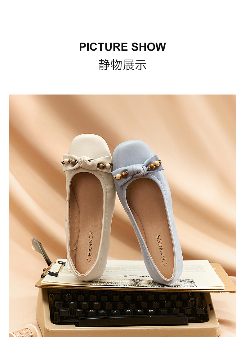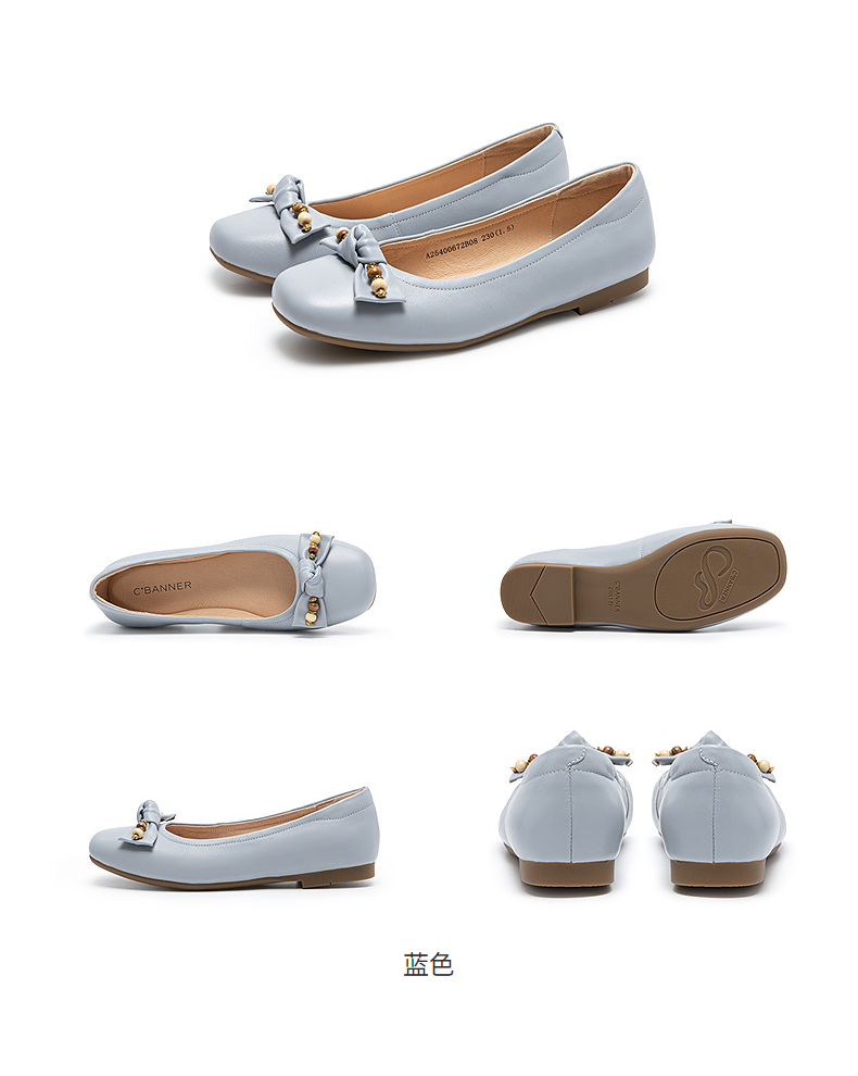 千百度羊皮蝴蝶结芭蕾鞋女平底小香风晚晚风浅口单鞋A25400672