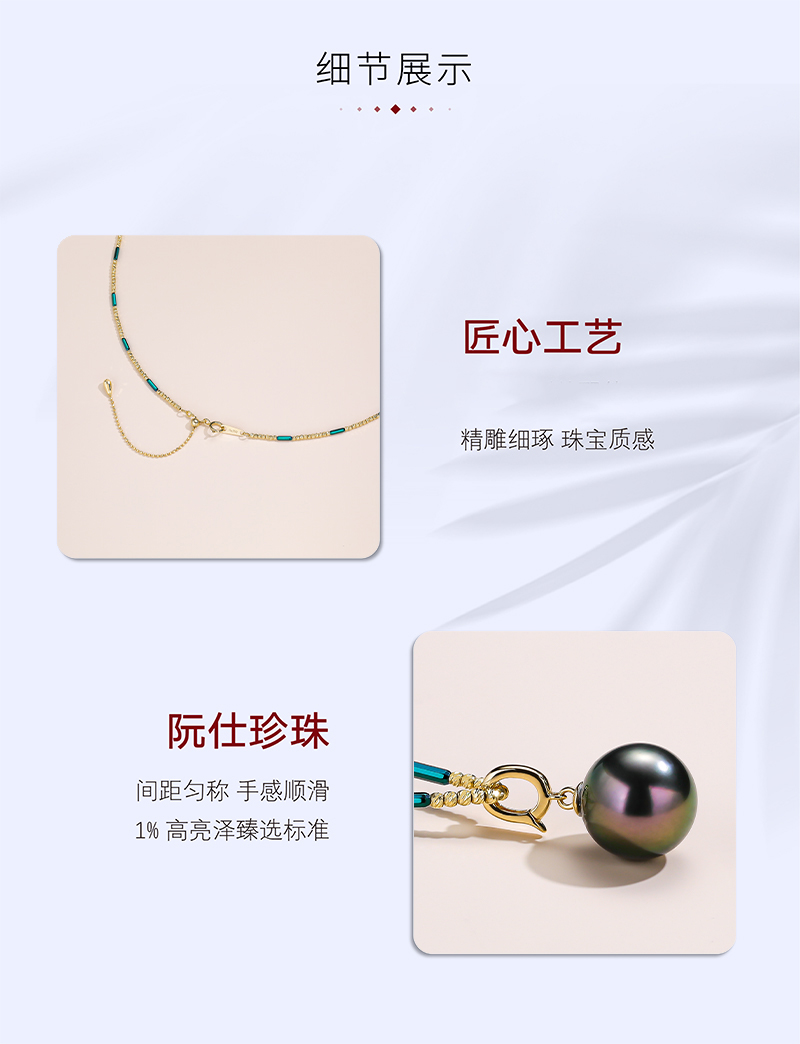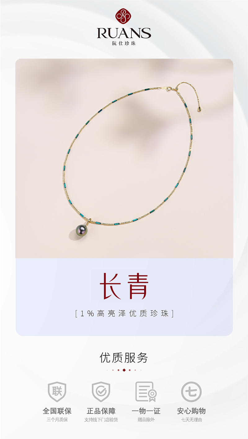 阮仕长青系列G18K金大溪地黑珍珠链牌 10-10.5mm NY2285CQ-1B