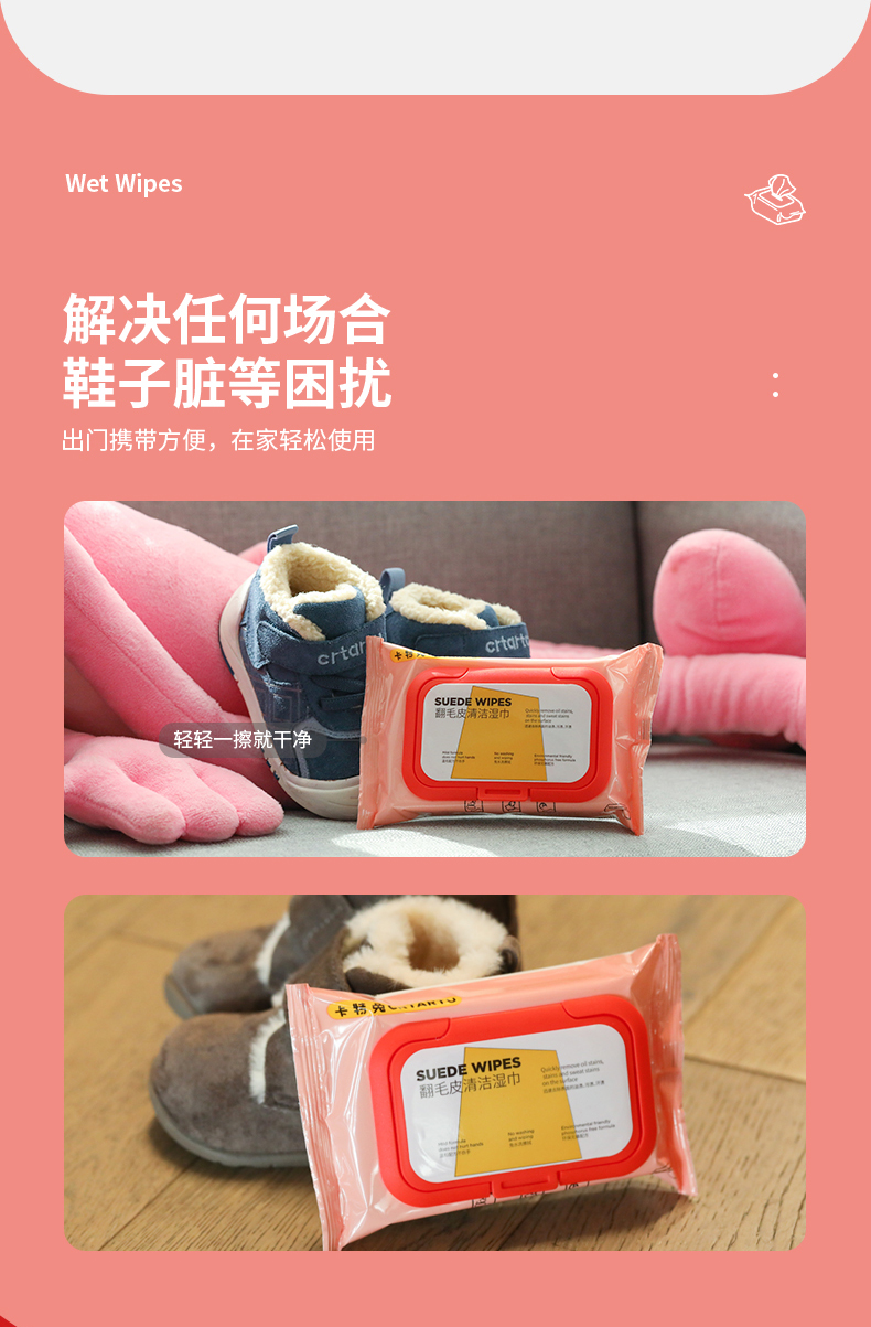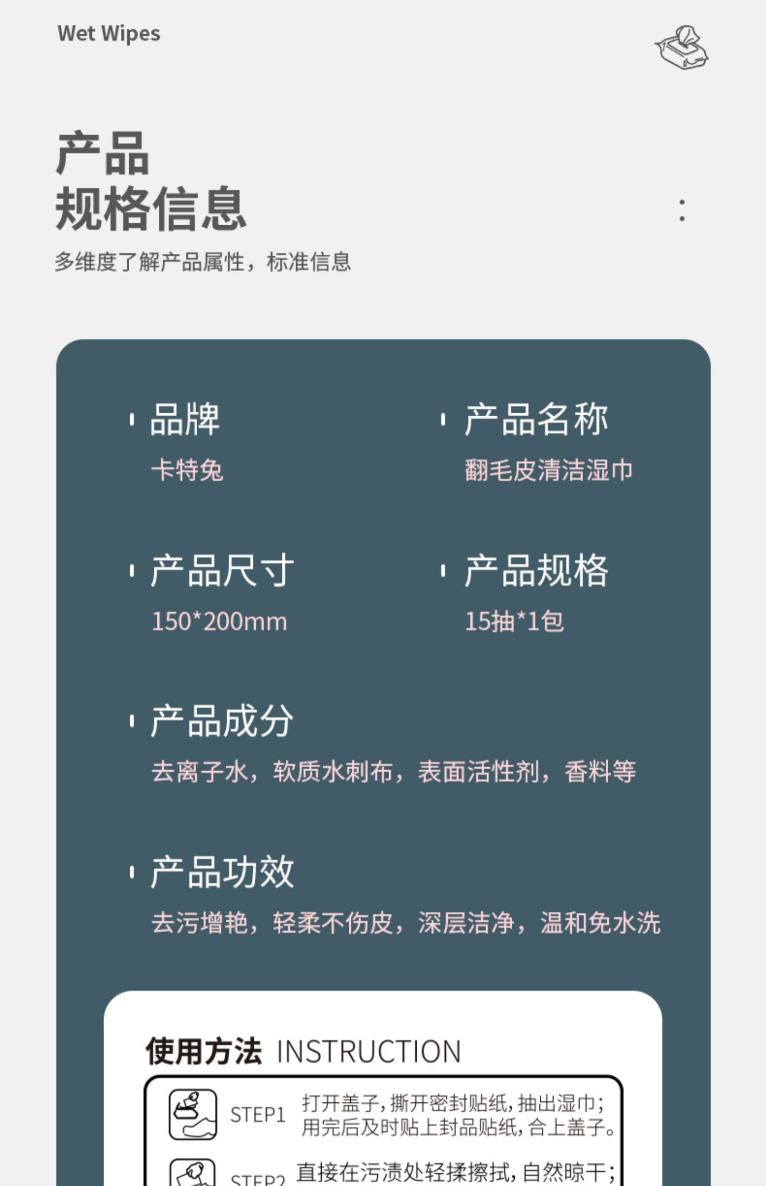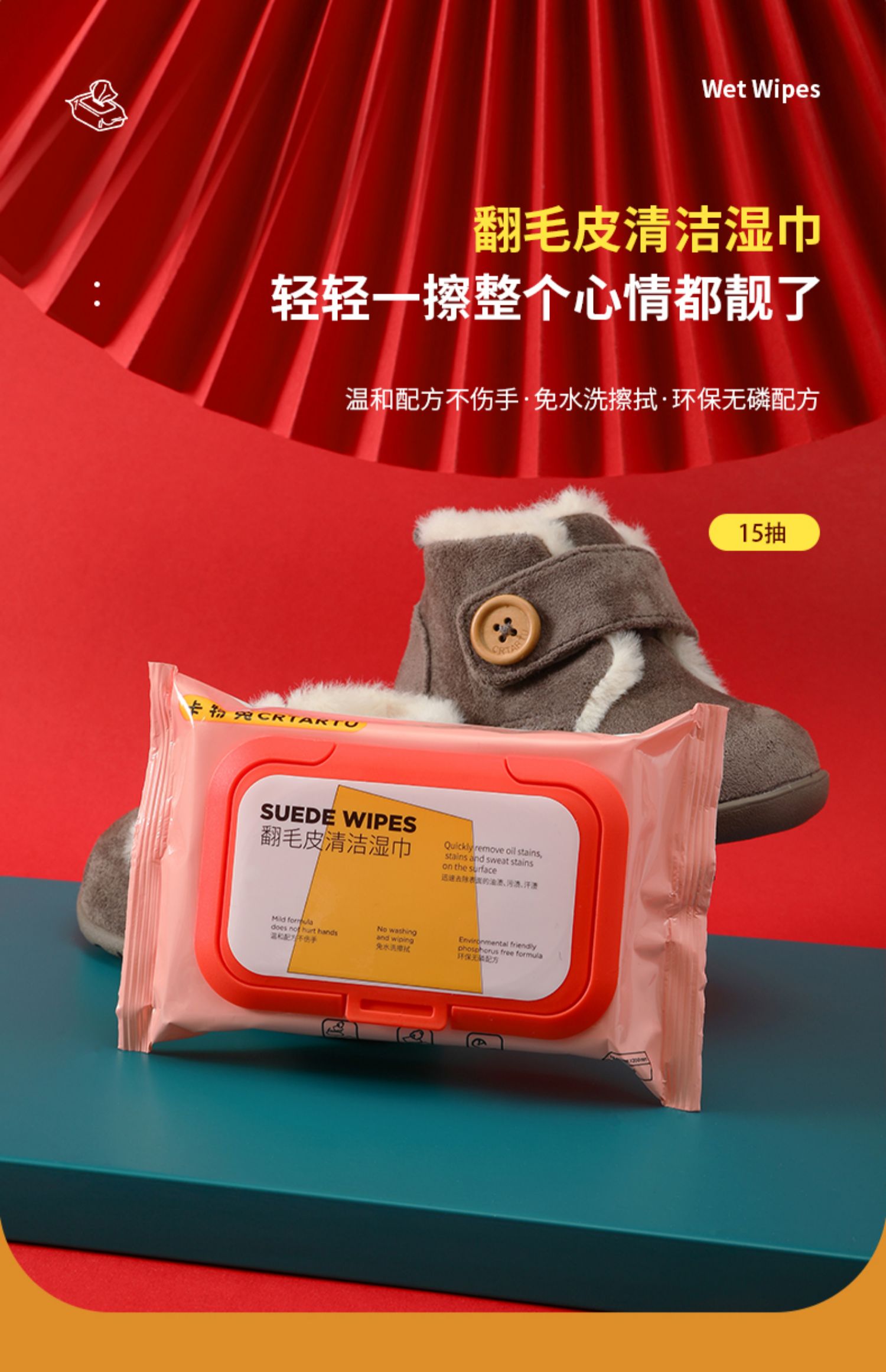 卡特兔翻毛皮一次性清洁湿巾 15抽*1包装