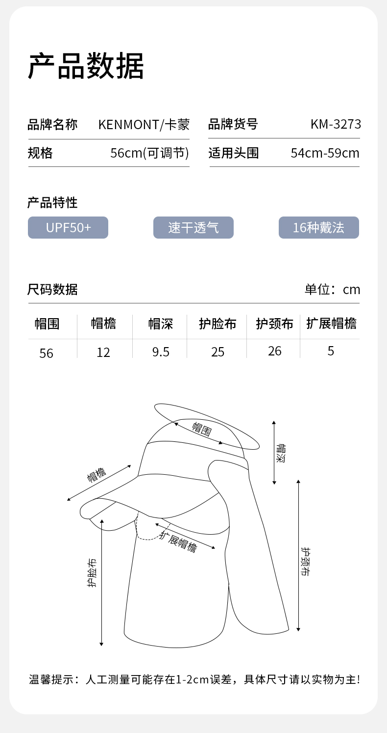 【云优选】卡蒙养蜂人磁吸不花妆全方位硬核防晒帽KM-3273