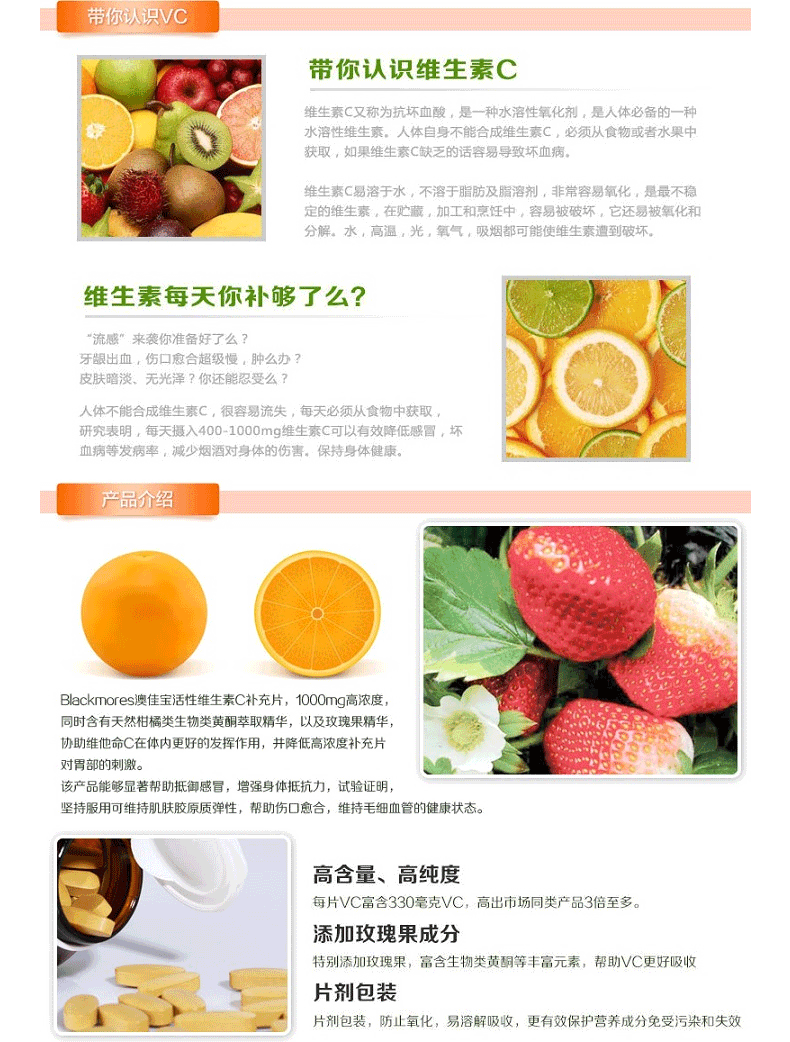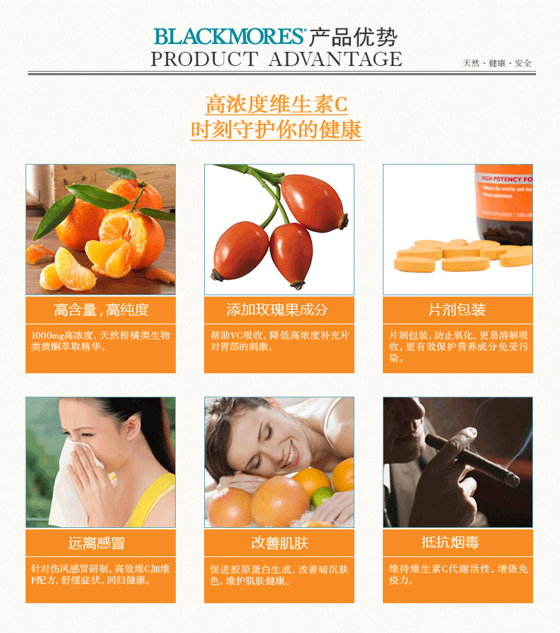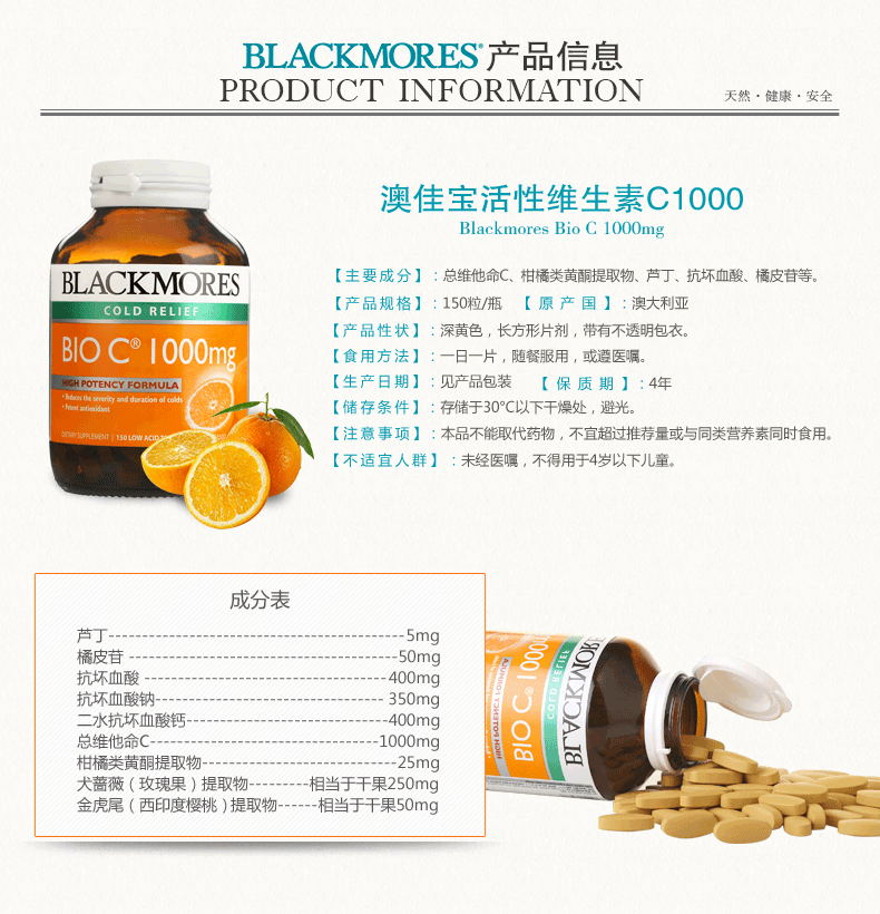 澳佳宝Blackmores天然活性BIOC1000mg150粒补充维生素健康排毒