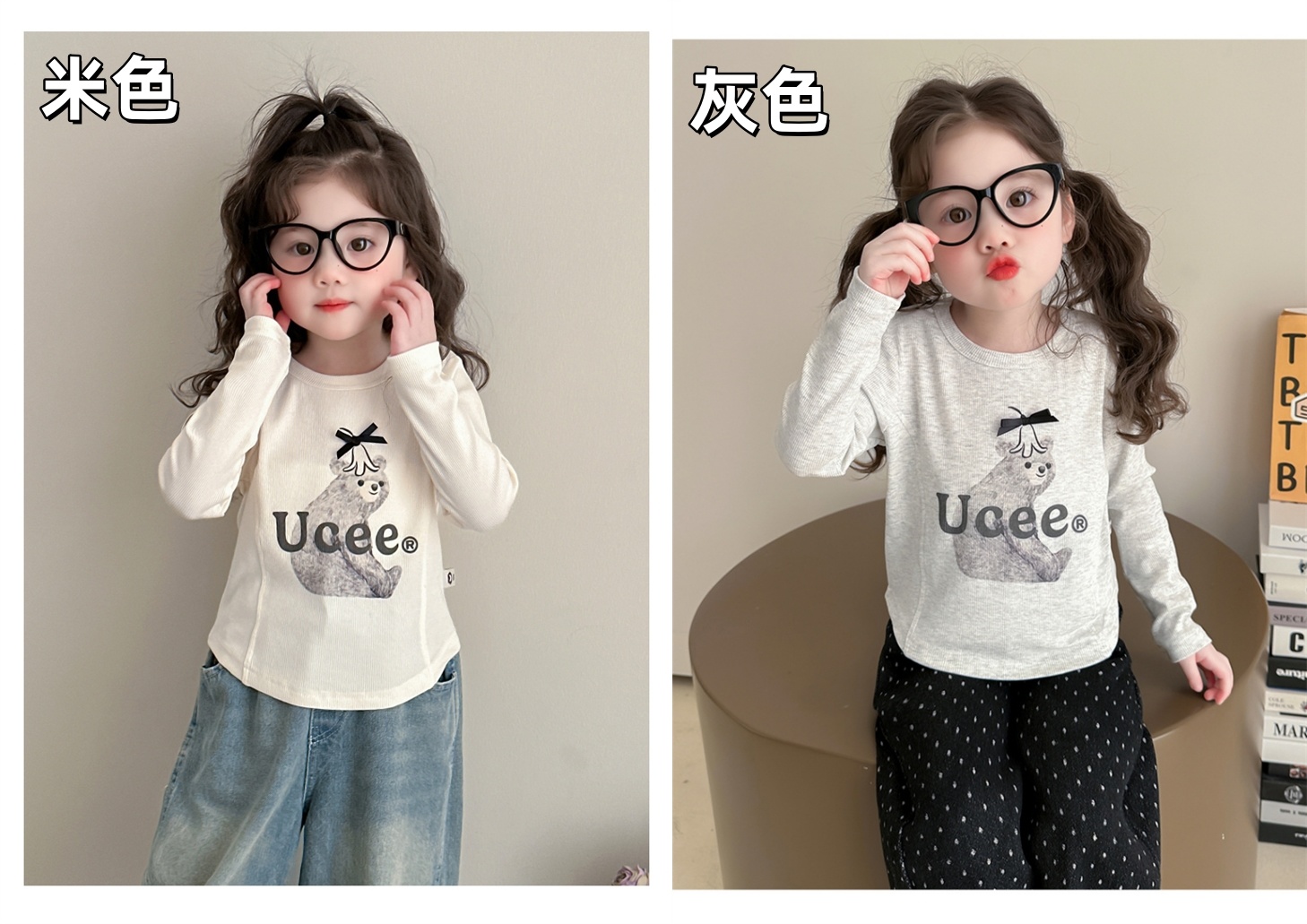 【品名】西蒙日记大熊拼接长袖T恤DLWXM010