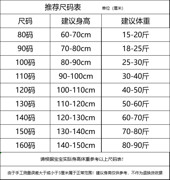 【尺码】80-160码