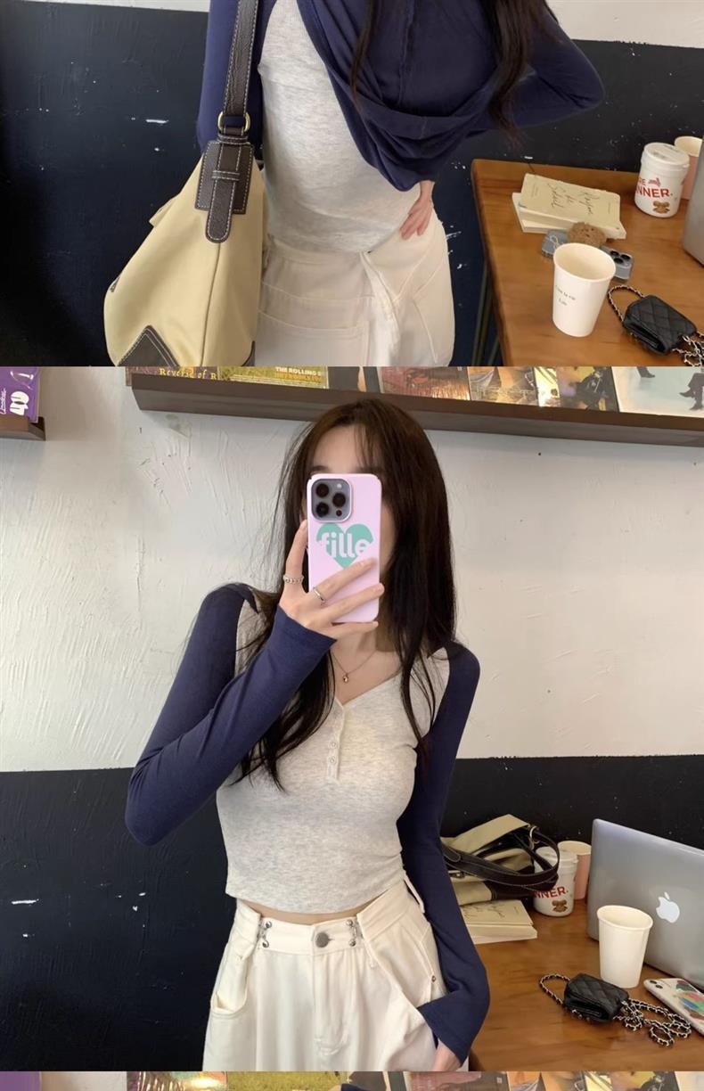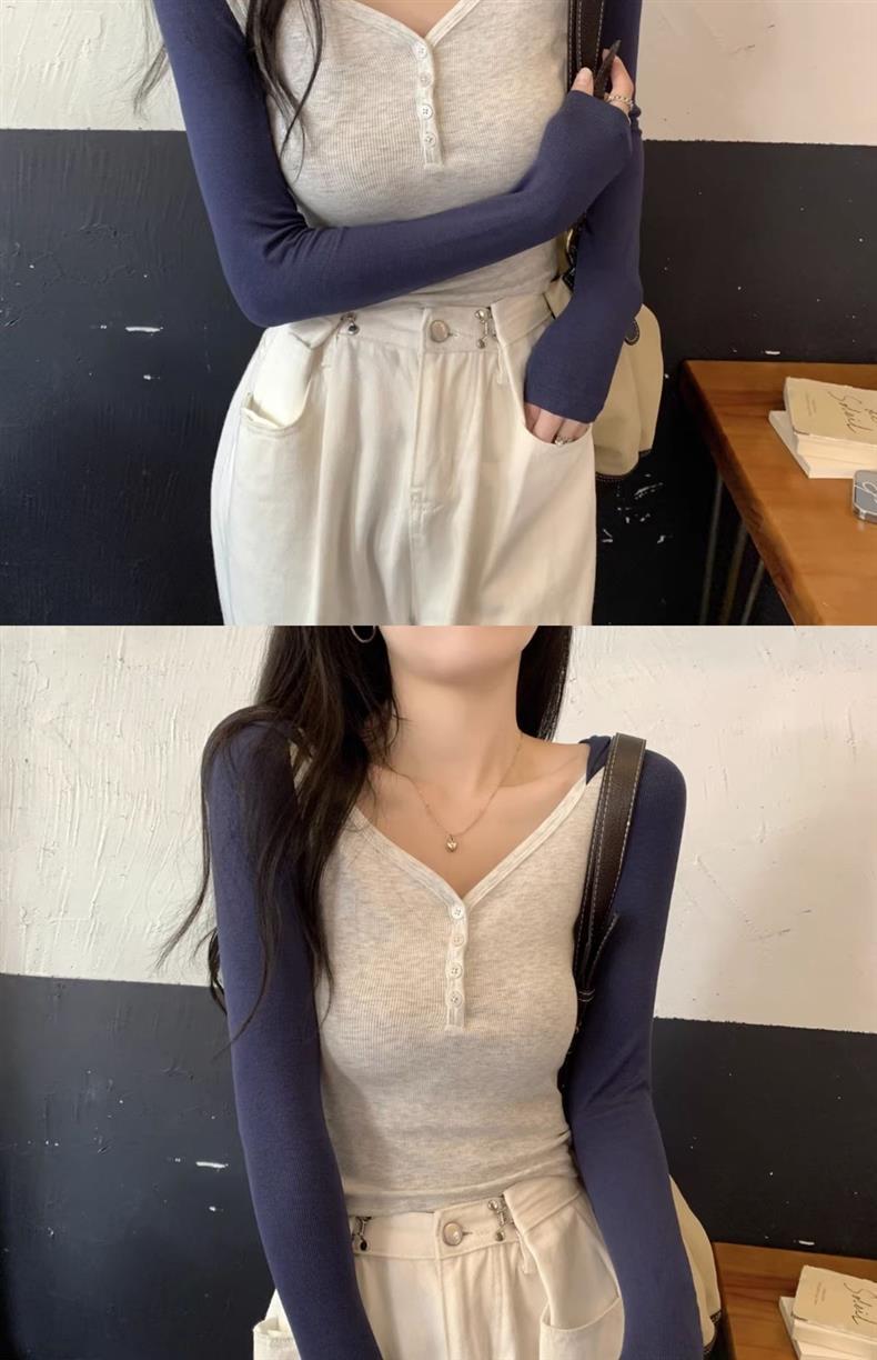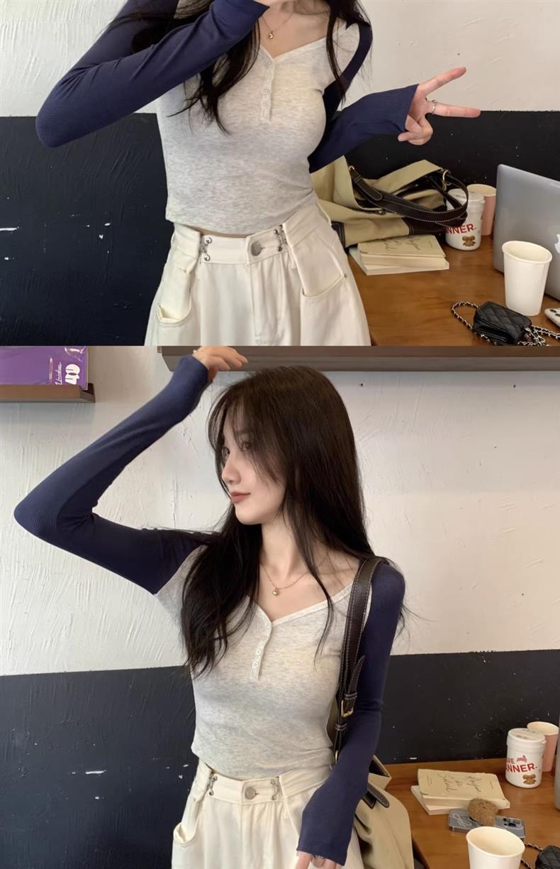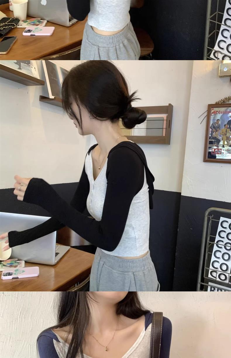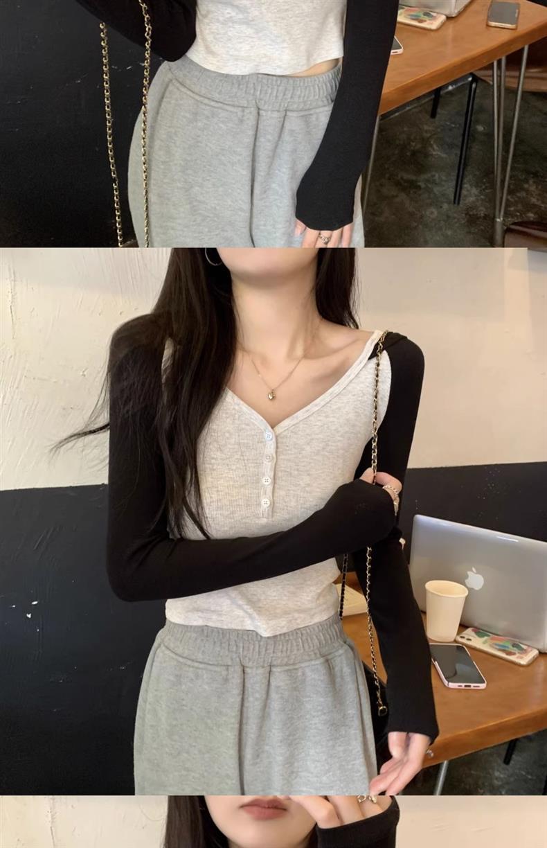早秋新款【连帽长袖t恤女】修身显瘦 V领辣妹短款打底上衣 插肩袖拼接长袖
