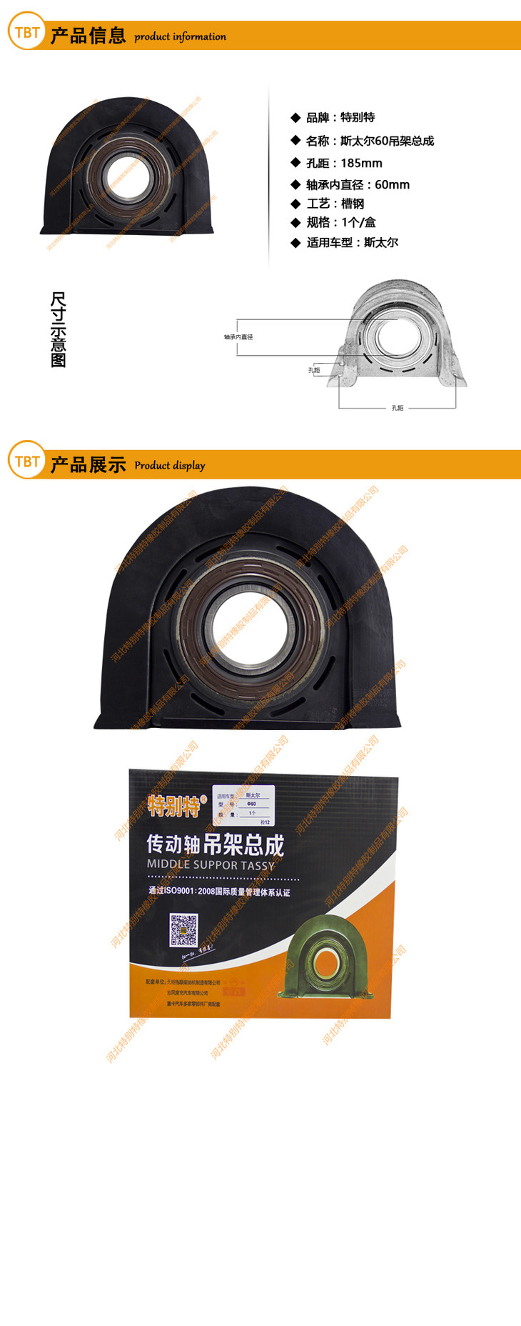 | 斯太尔60吊架总成(槽钢黑)(孔径205mm)/斯太尔60传动轴吊架总成/斯太尔60传动轴过桥总成(单价=1个,6个=1箱) |