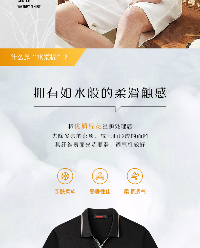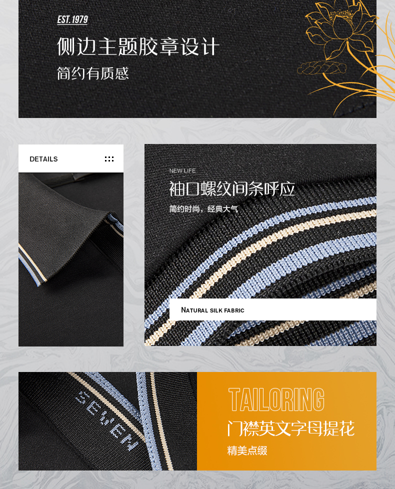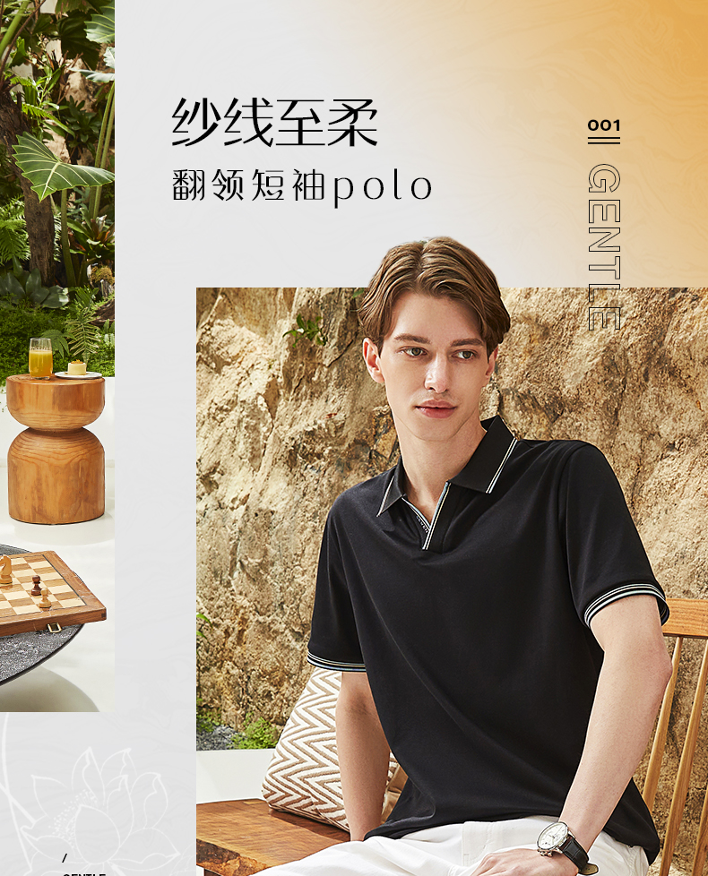 【水柔棉】柒牌短袖男士polo衫夏季新款运动休闲提花翻领T恤 124T70960