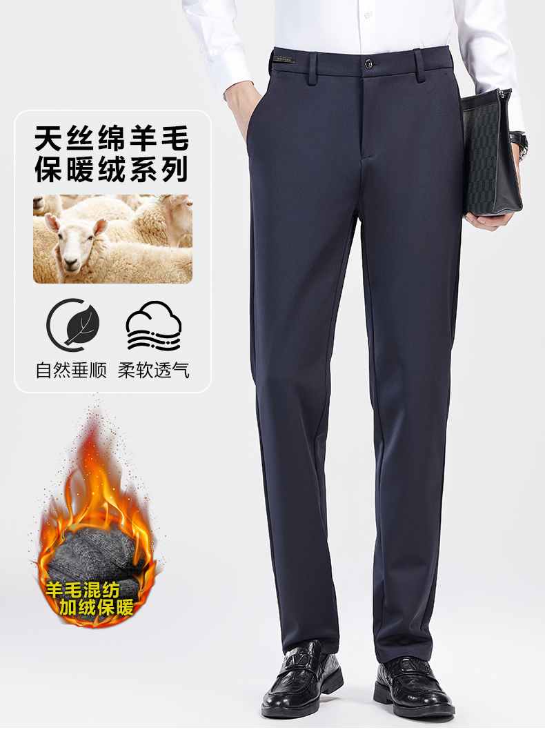 【含绵羊毛 加绒保暖】罗蒙男士秋冬直筒休闲裤加绒加厚保暖男商务通勤百搭西裤