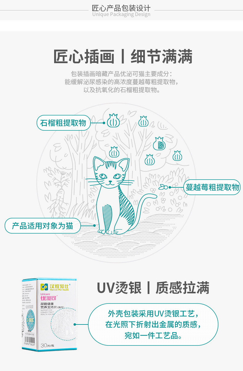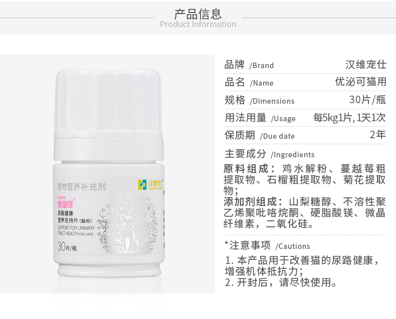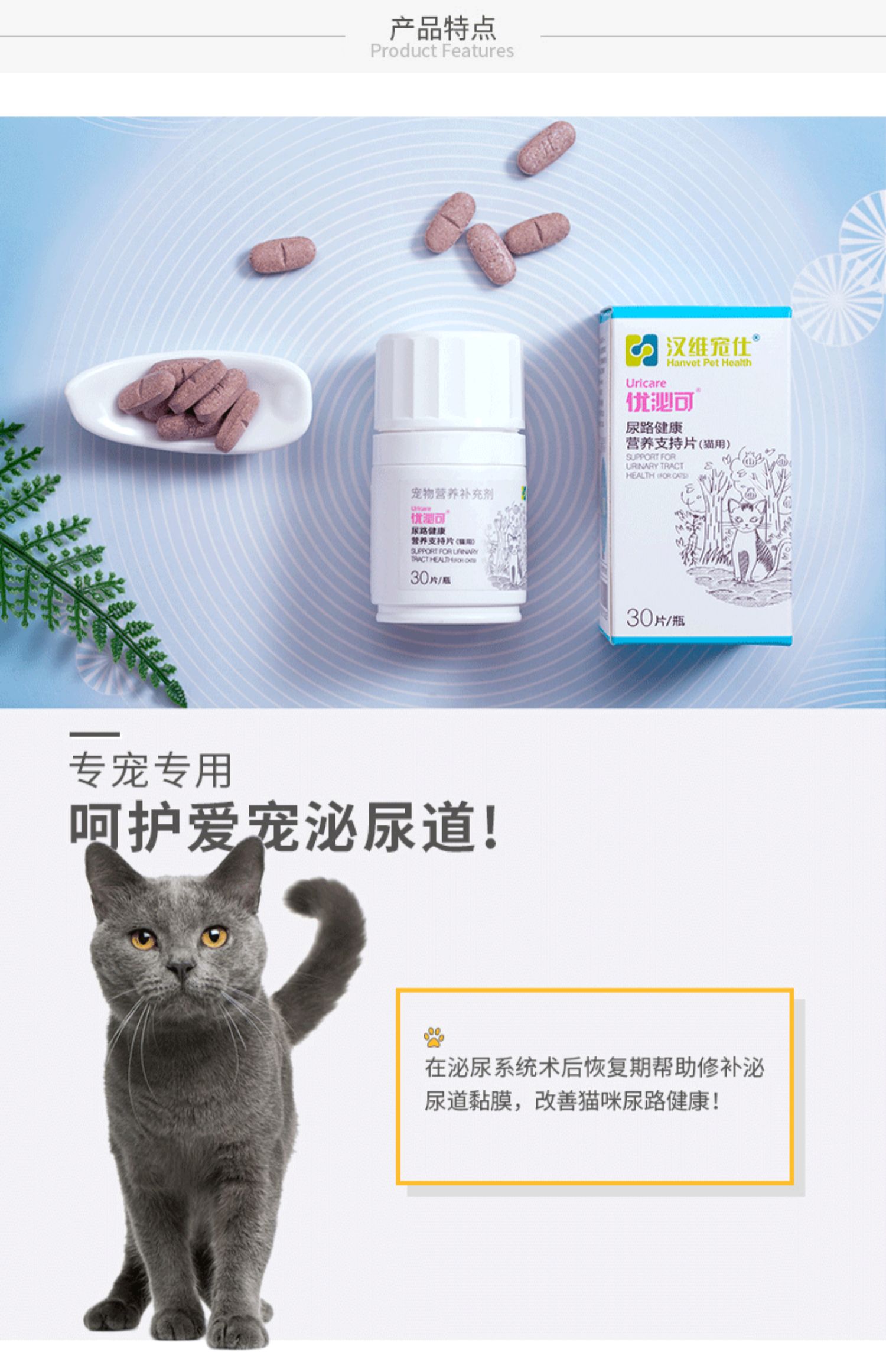汉维宠仕/优泌可猫咪蔓越莓30片D甘露糖泌尿保健绝育术后尿路感染
