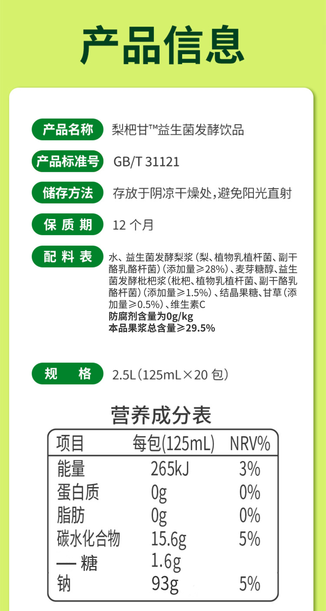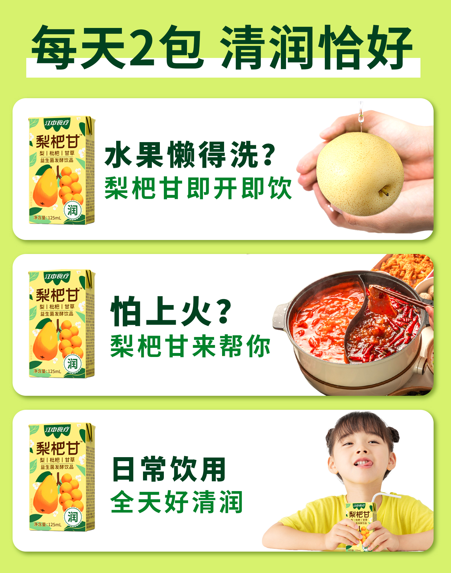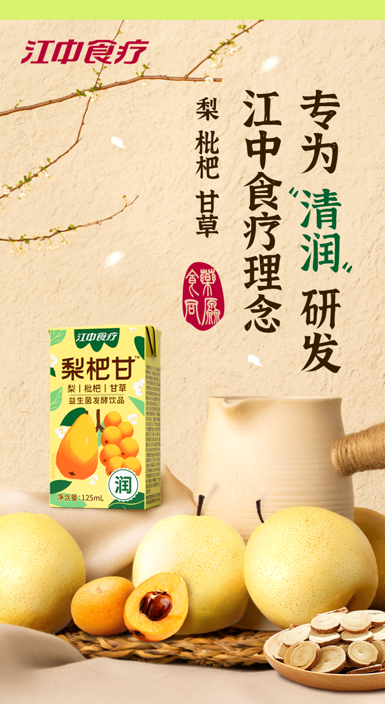 江中食疗梨杷甘 果蔬益生菌发酵饮 125ml*16包 干净清润好喝 药食同源 保质期到2026年6月