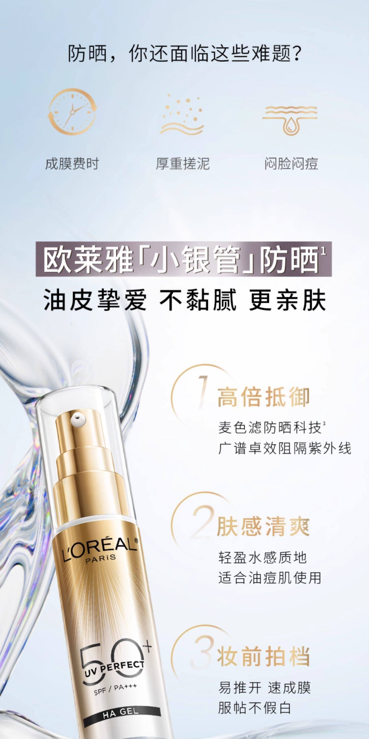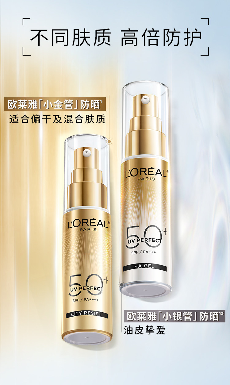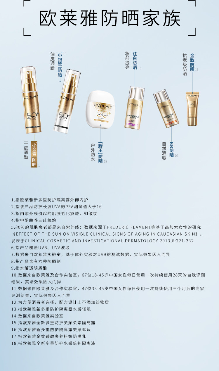 欧莱雅小金管小银管防晒霜隔离霜 野王防晒霜牡丹防晒霜面部身体清爽户外防晒乳防紫外线敏感肌