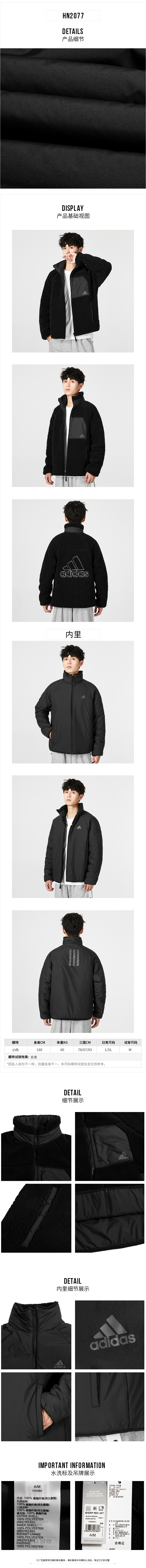 阿迪达斯 (adidas) 外套男款女款2022冬季新款仿羊羔绒运动服保暖情侣两面穿夹克 HN2077