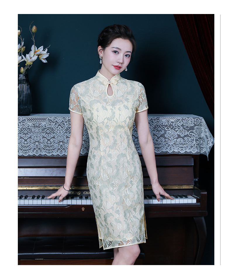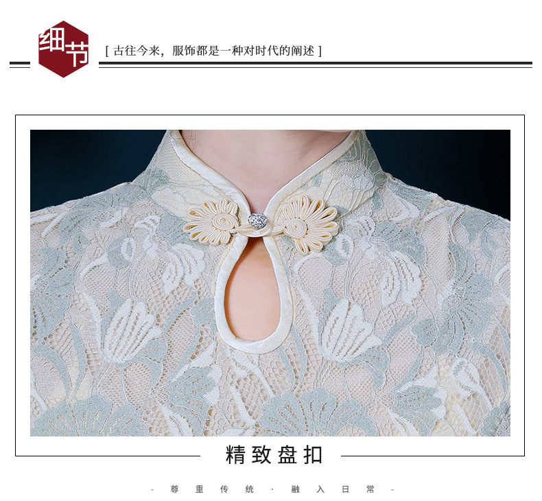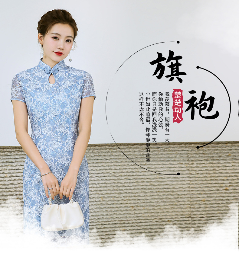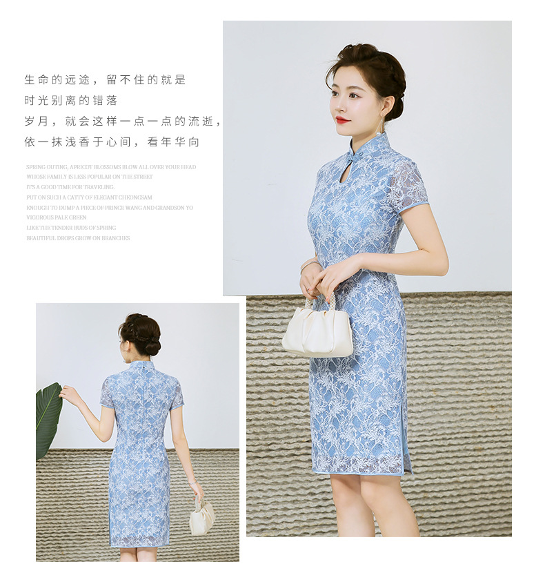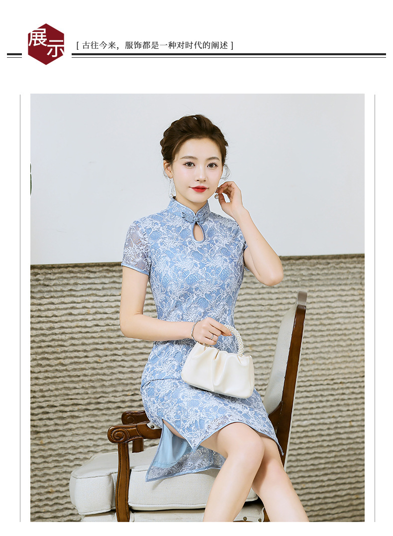 浅色蕾丝旗袍仙女裙,少女改良年轻款复古日常连衣裙YSD-05943