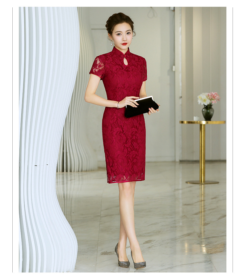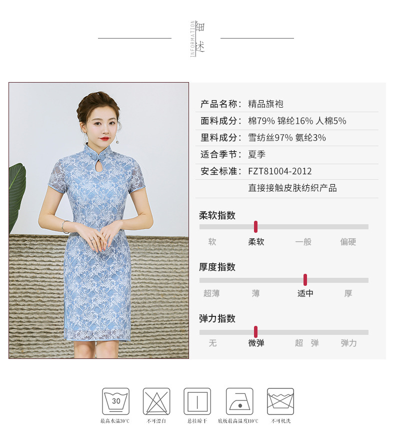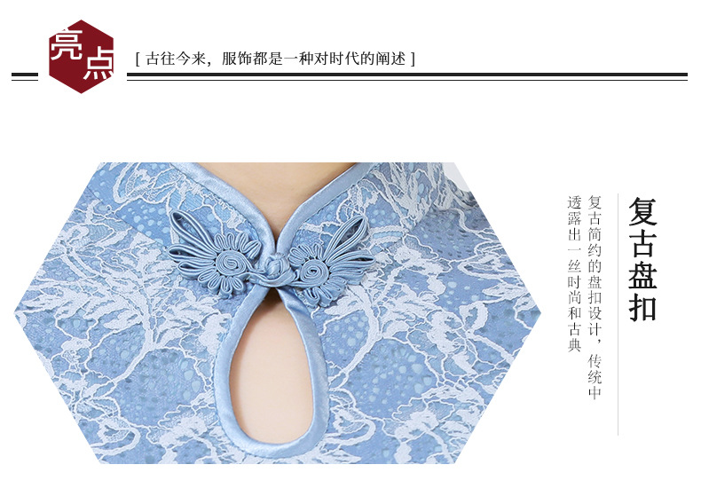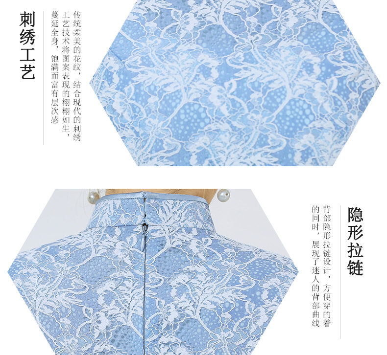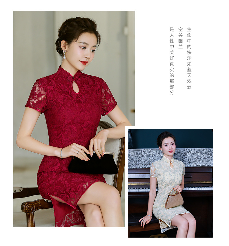 浅色蕾丝旗袍仙女裙,少女改良年轻款复古日常连衣裙YSD-05943