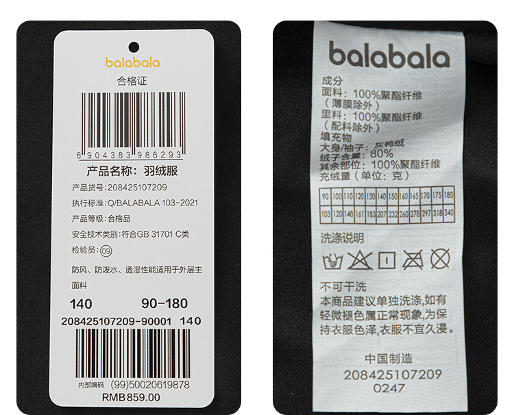 巴拉巴拉balaOne儿童羽绒服男女童外套长款加厚保暖2025反季童装