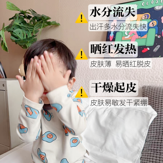 夏季宝贝危“肌”四伏 烈日下,宝宝肌肤易晒红发热 干燥起皮,水分悄悄溜走💦 一个都不能忽视!