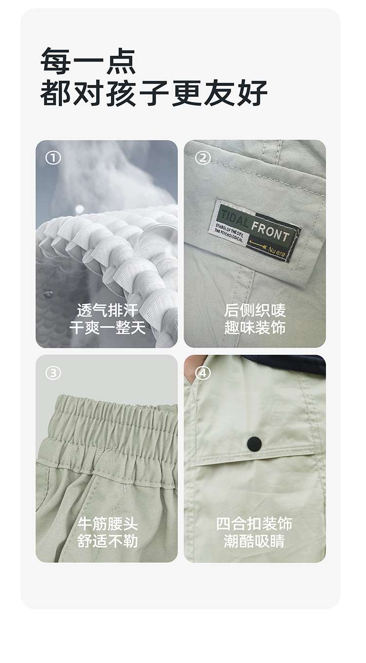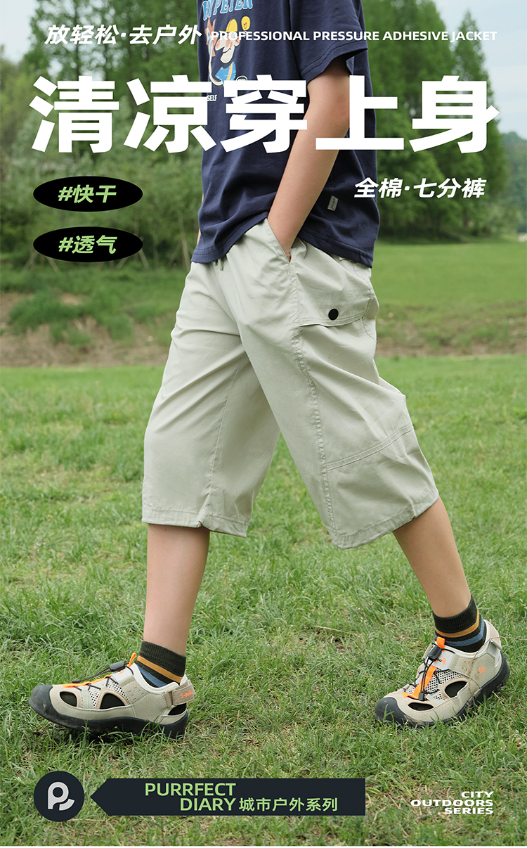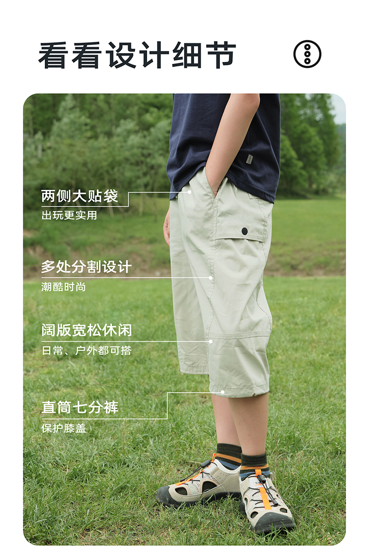 【冰棉户外出行裤】儿童分割设计阔版7分裤 PXK2433
