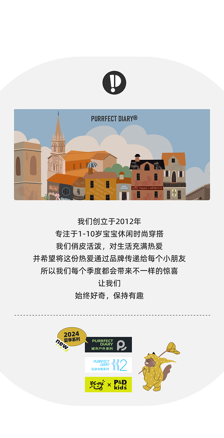 Purrfect-Diary专注于贴近自然随性的穿着概念,轻奢平价的童装文化传播,在产品设计上更加注重婴童穿着的舒适性、安全性、更出众的国际化品牌,将欧美的育婴文化在中国进行深入的传播与推广。