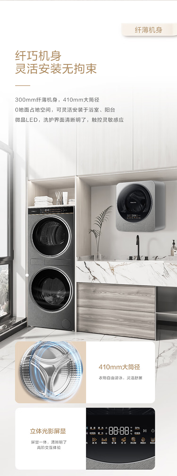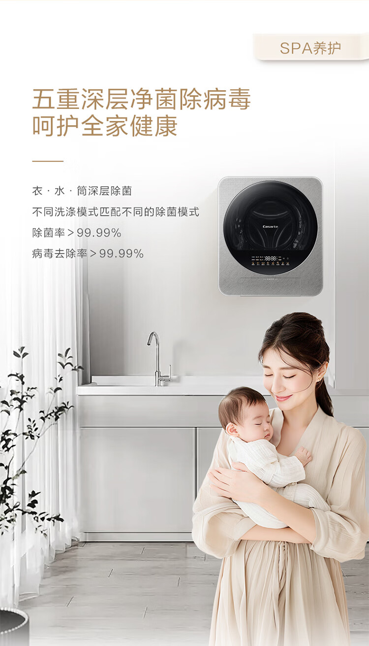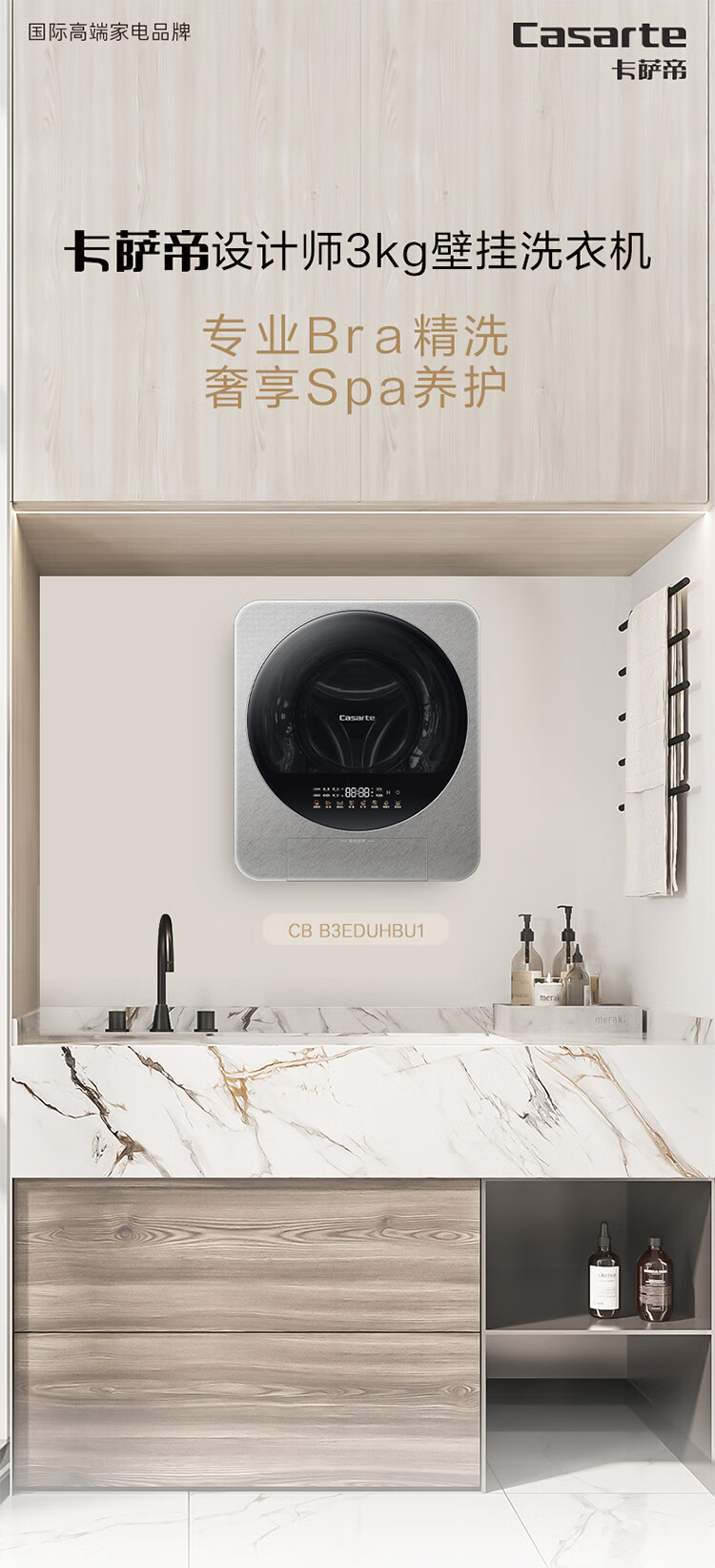 卡萨帝(Casarte)设计师迷你壁挂洗衣机3KG精华洗智能投放滚筒洗衣机全自动 儿童内衣洗衣机 紫外除菌 高温煮洗 灰色B3EDUHBU1