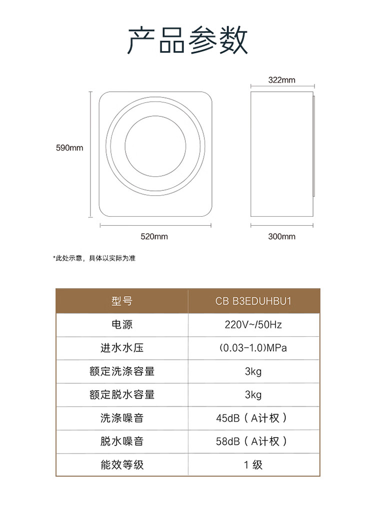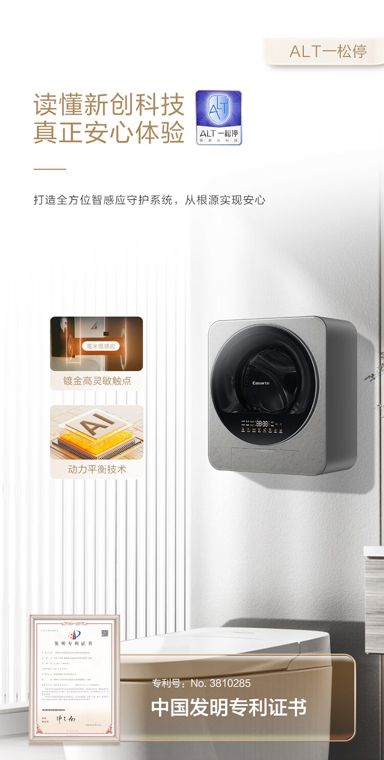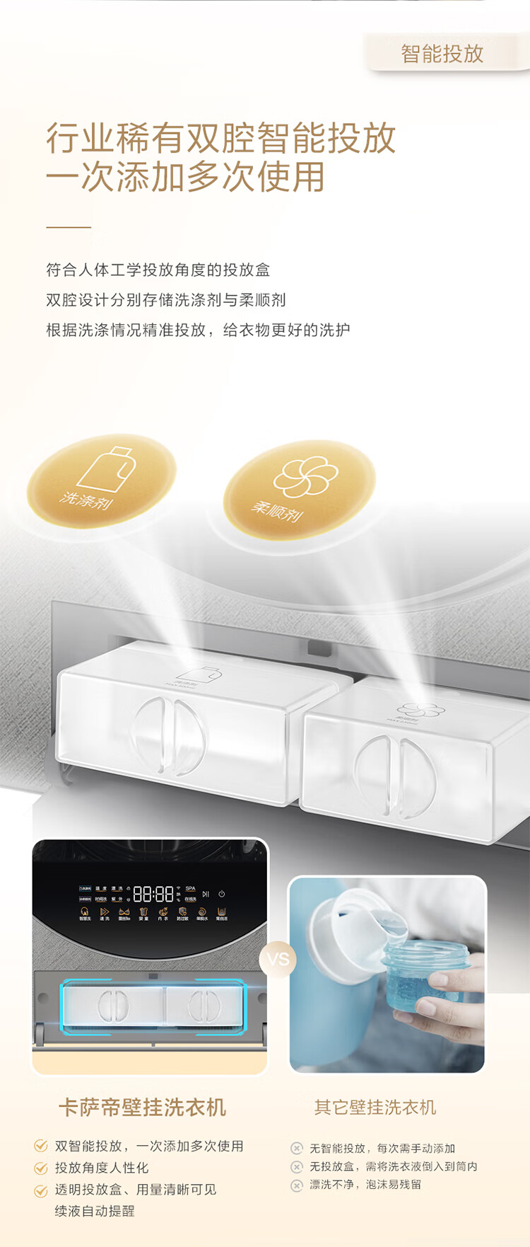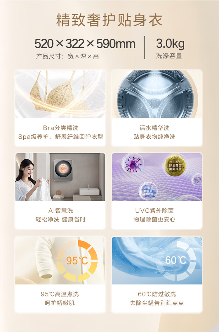 卡萨帝(Casarte)设计师迷你壁挂洗衣机3KG精华洗智能投放滚筒洗衣机全自动 儿童内衣洗衣机 紫外除菌 高温煮洗 灰色B3EDUHBU1