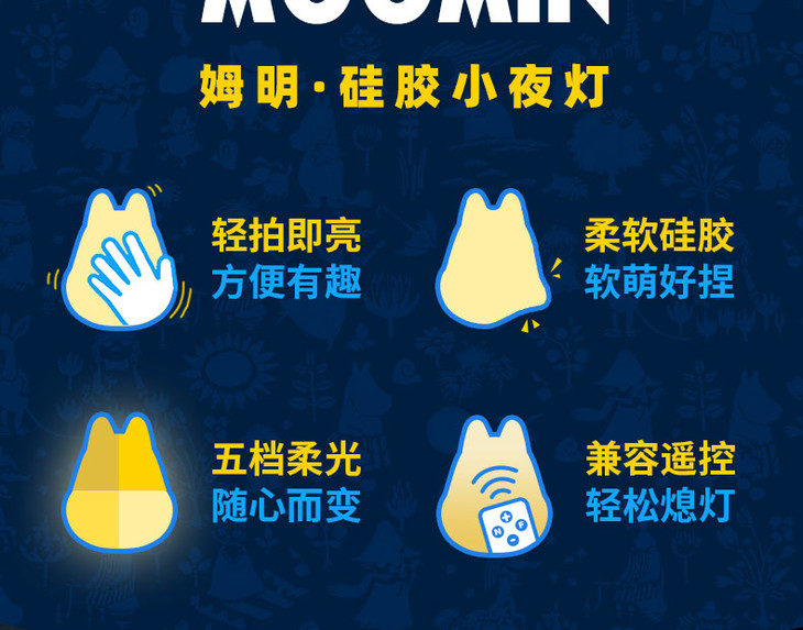 【半山书局】B14F丨Moomin姆明夜灯硅胶触控拍拍灯