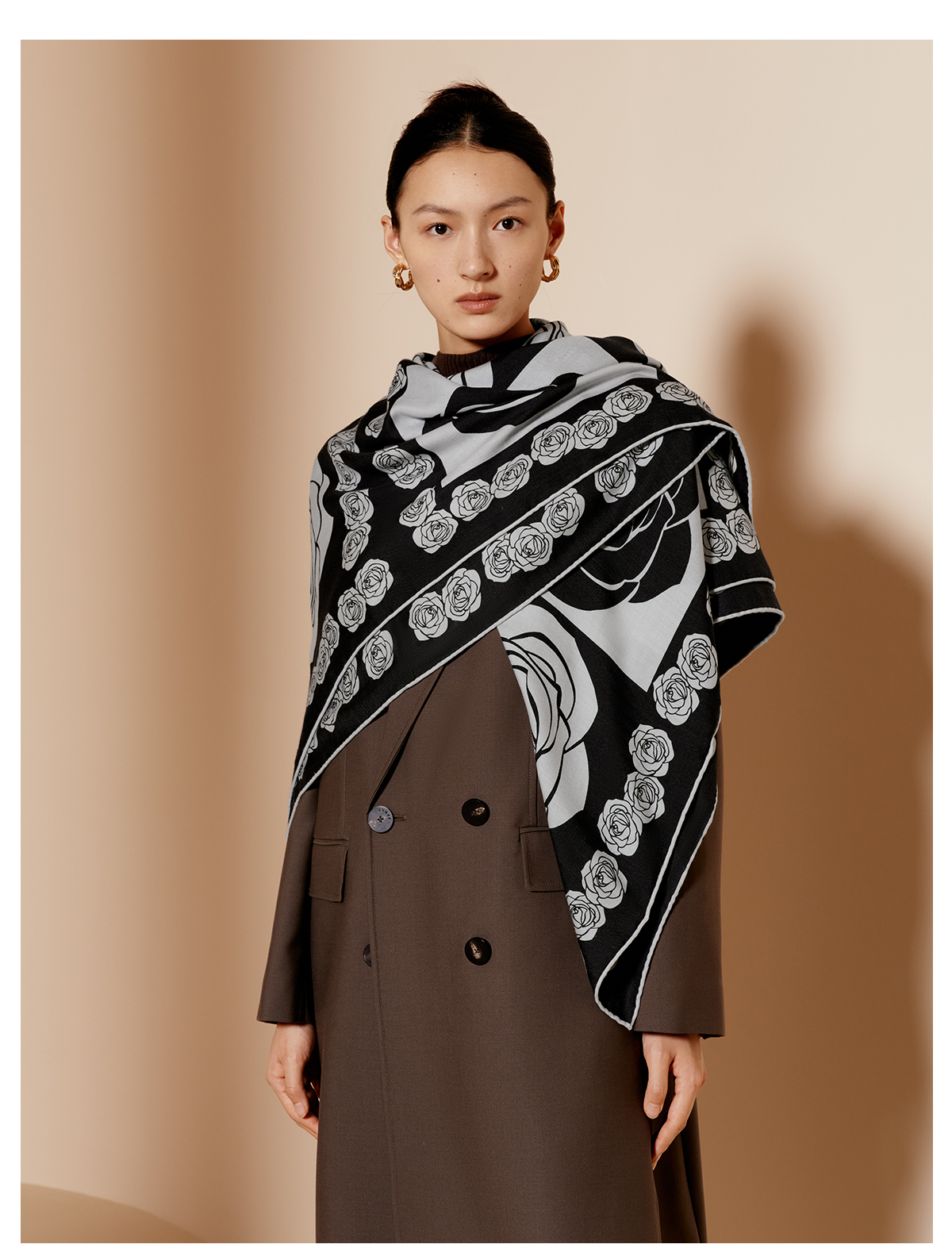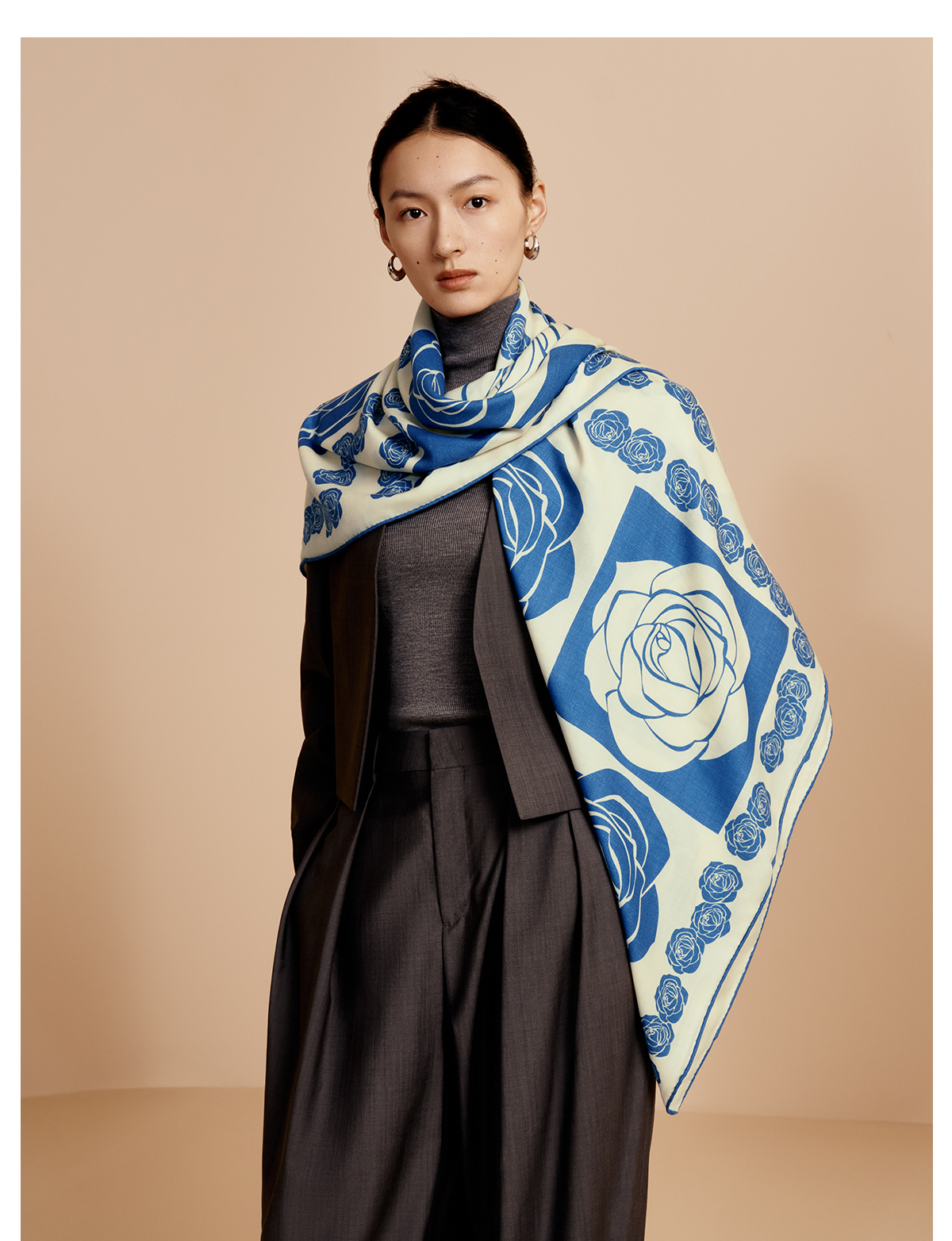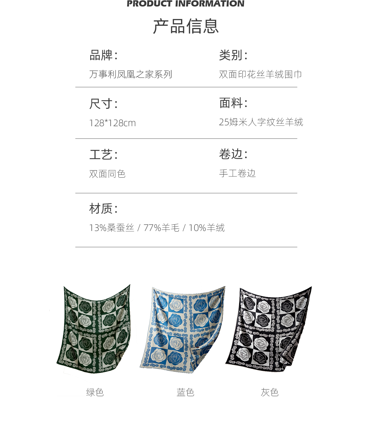 凤凰之家“花悦馥意”128厘米双面印花丝羊绒围巾