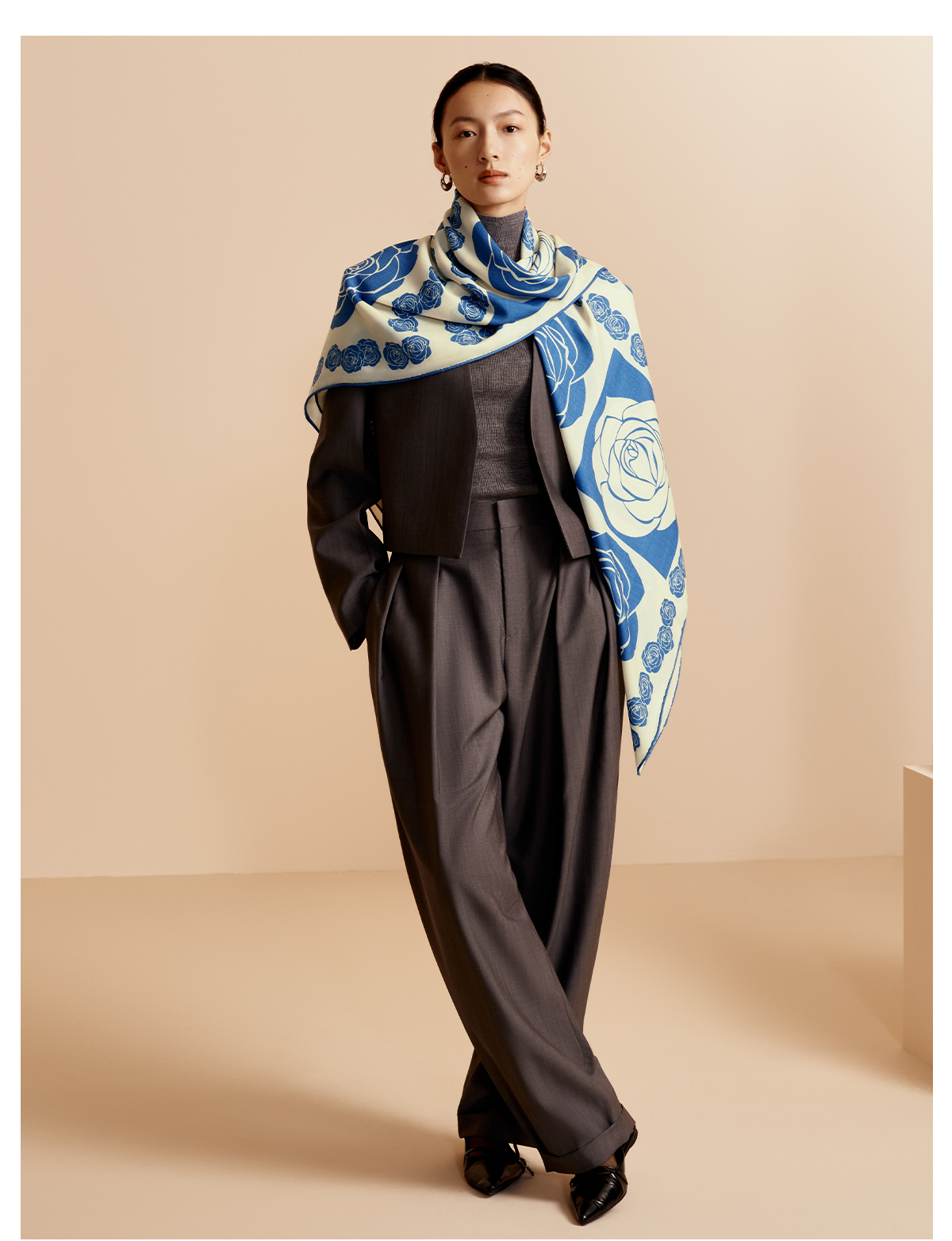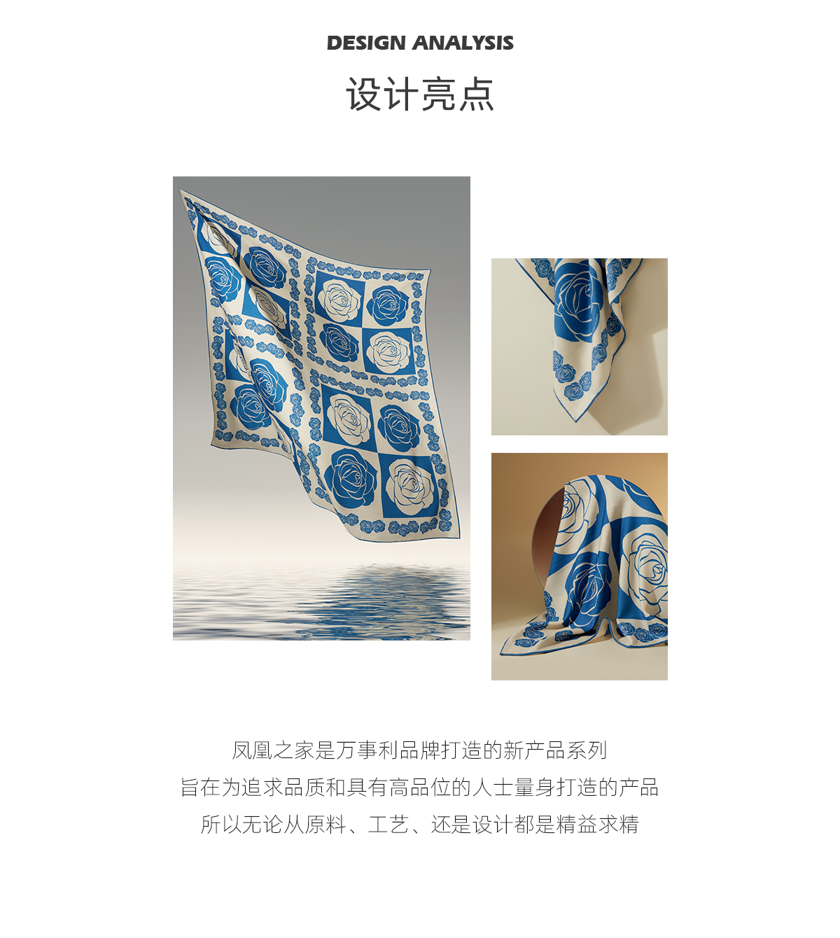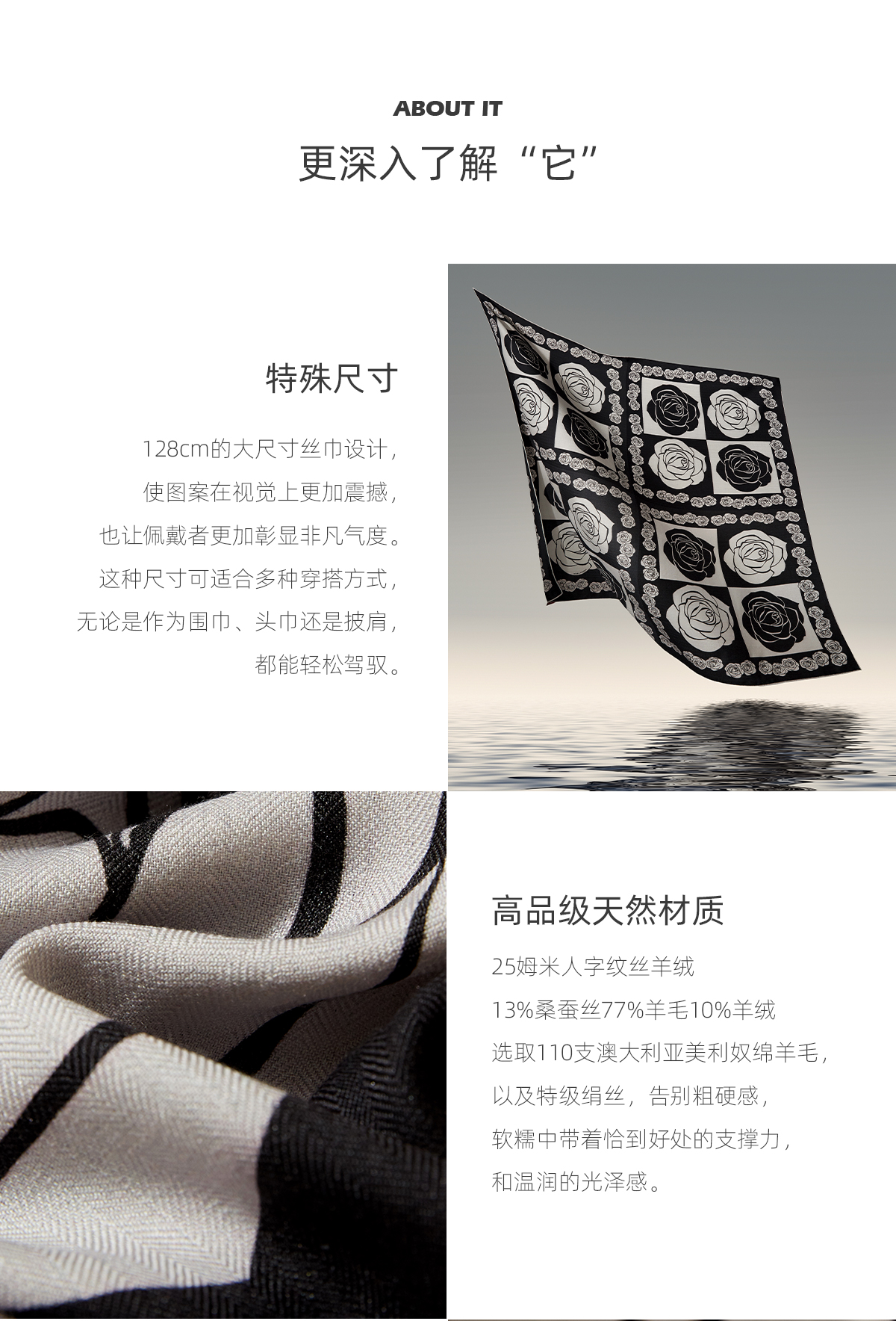 凤凰之家“花悦馥意”128厘米双面印花丝羊绒围巾