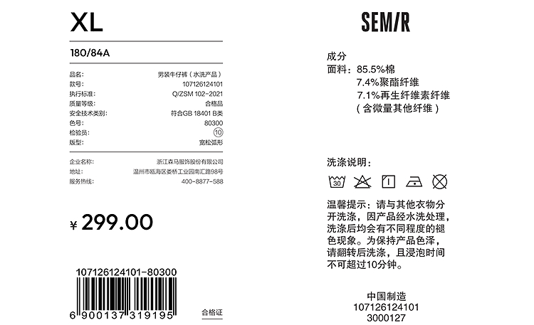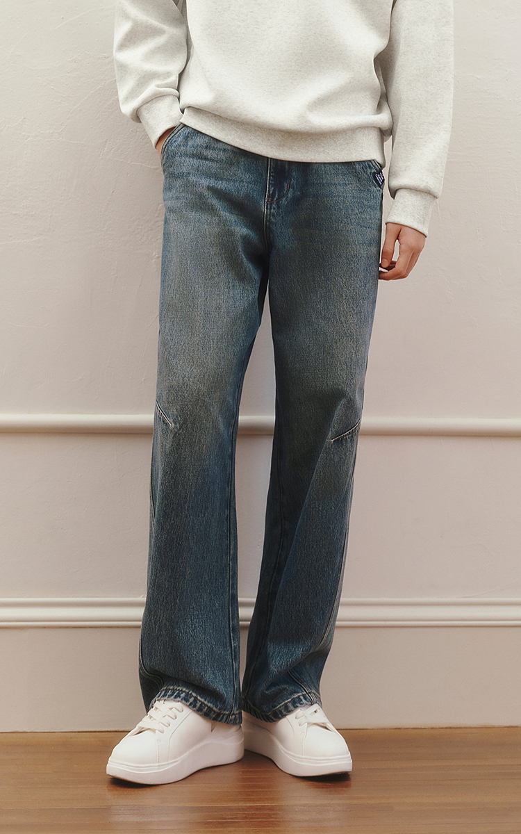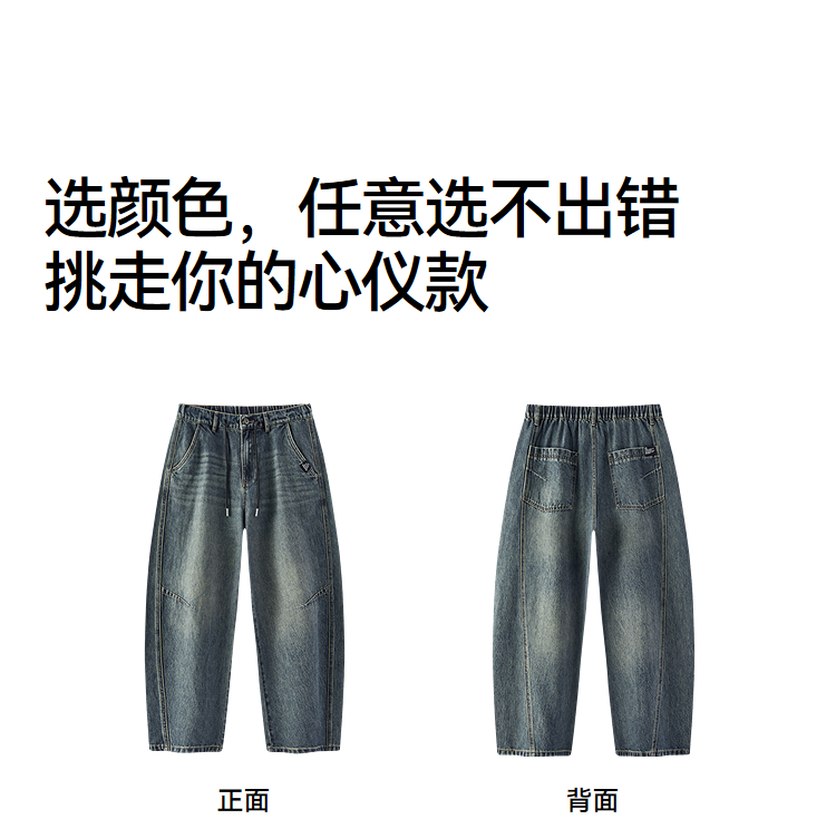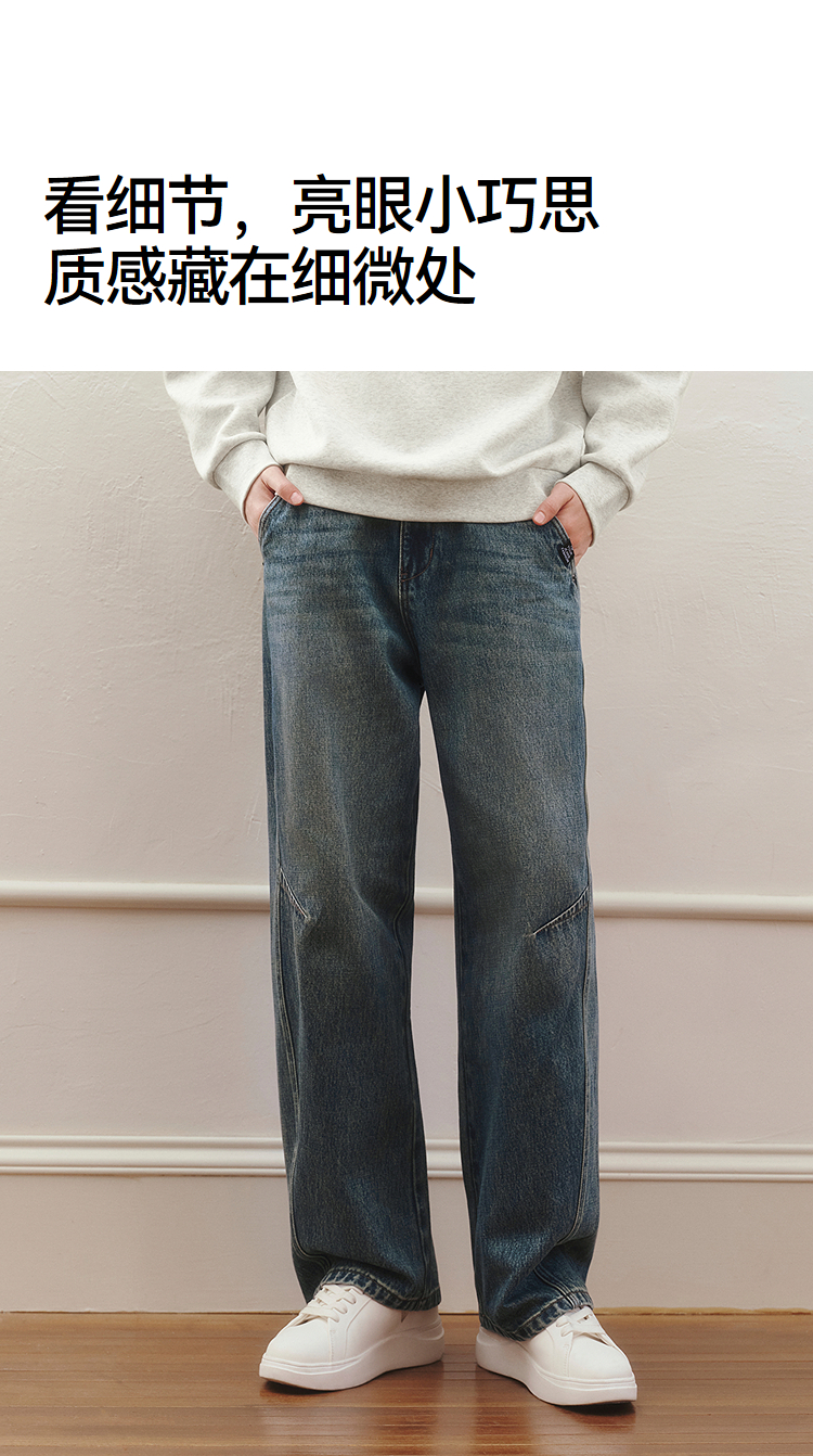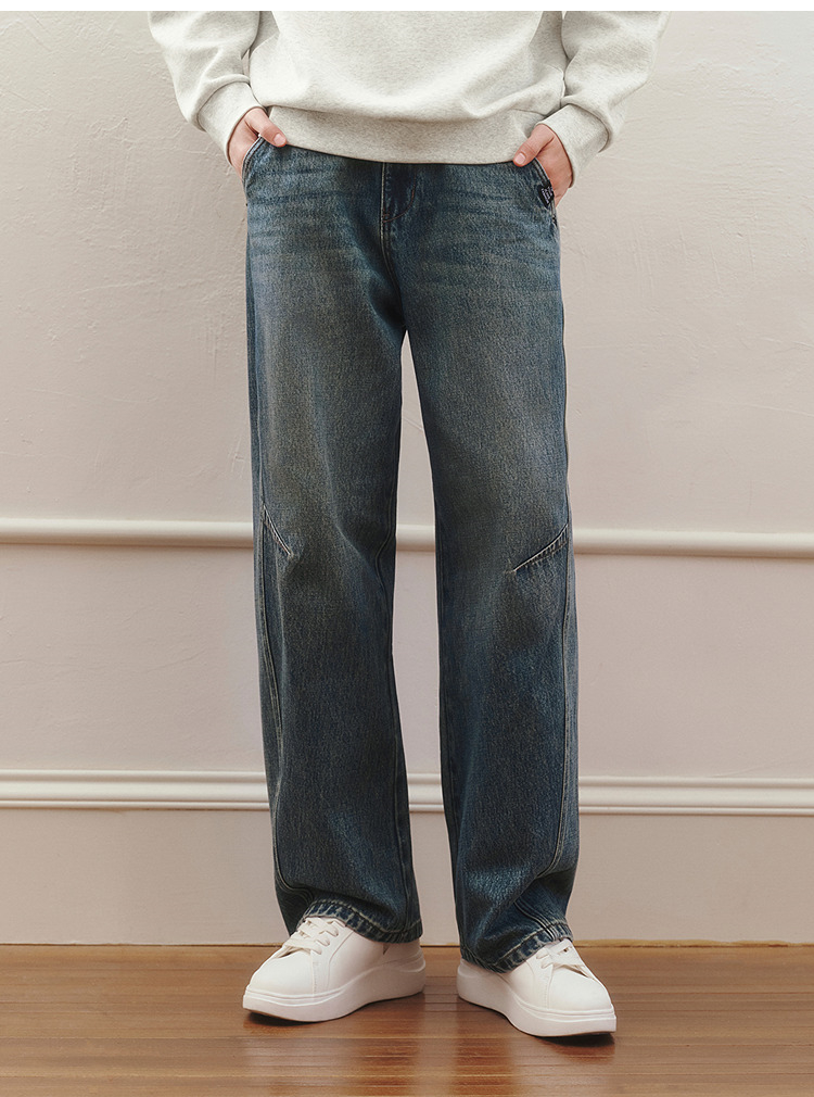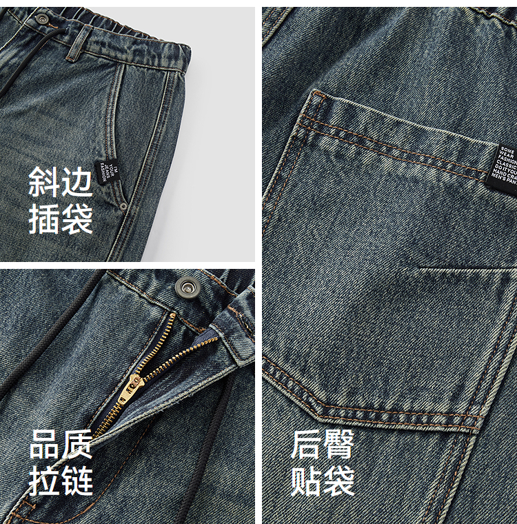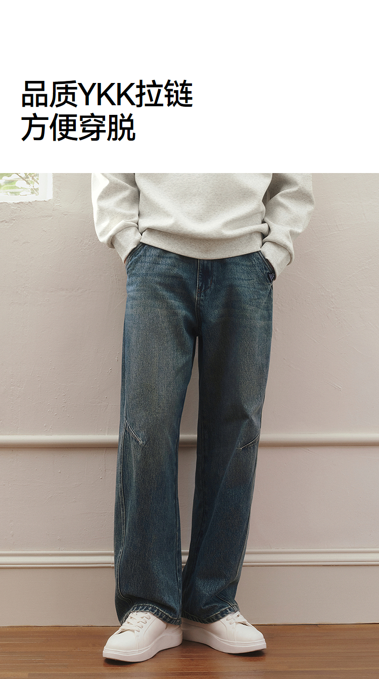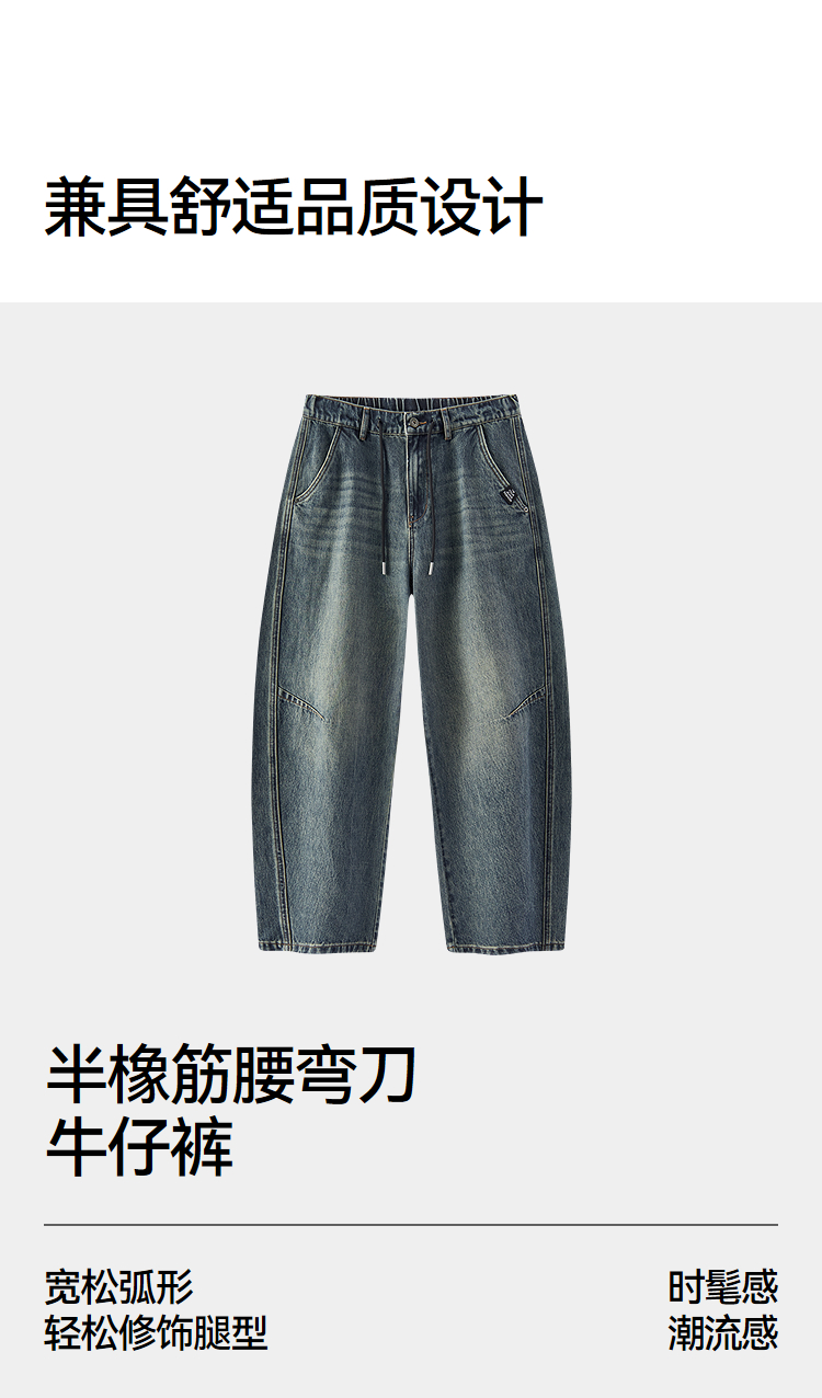商场同款|森马牛仔裤男春季宽松弯刀裤2026新款半橡筋腰抽绳长裤