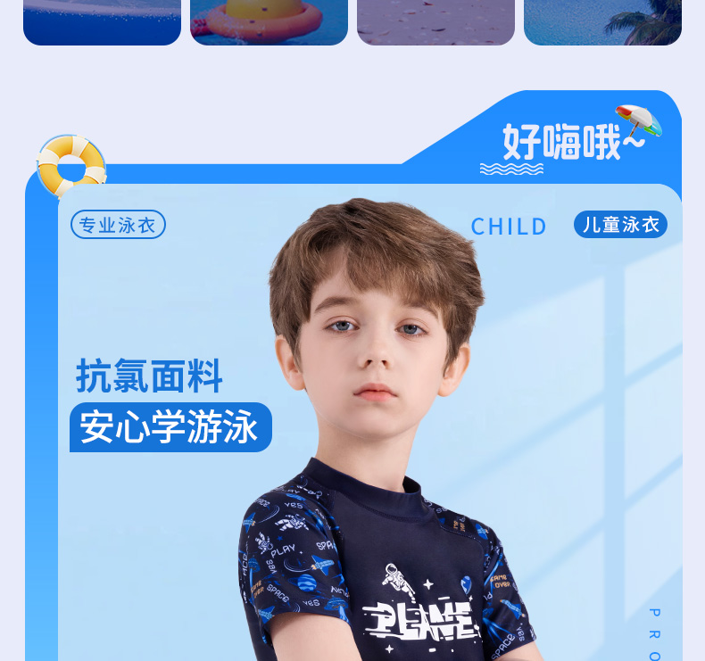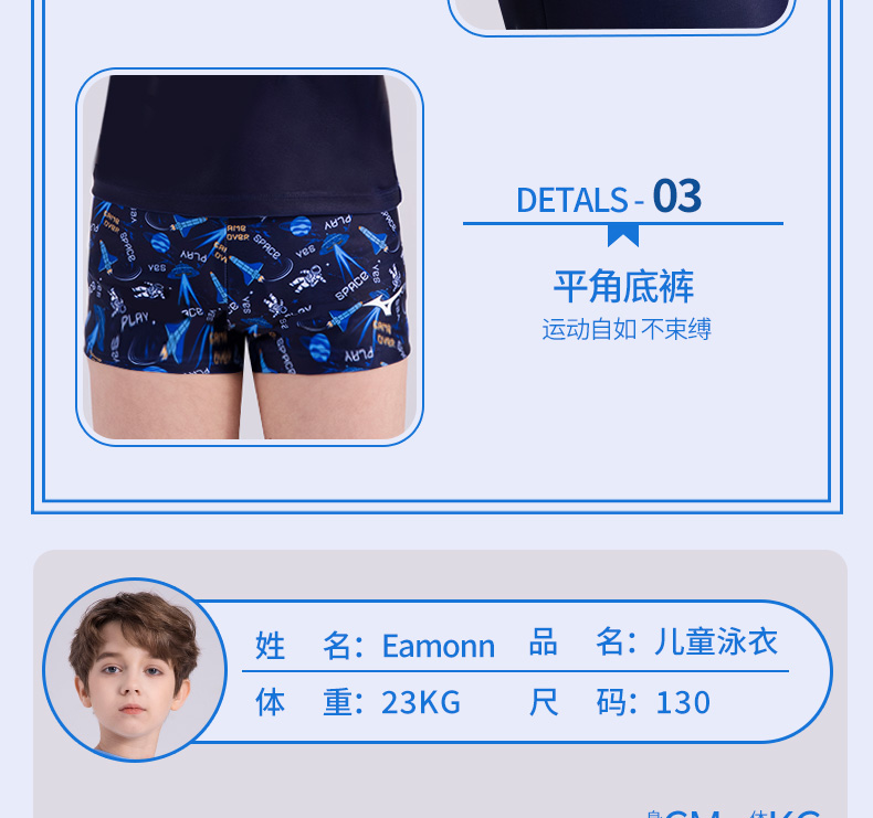 【美津浓】男童夏季防晒速干短袖分体泳衣N2CGB412