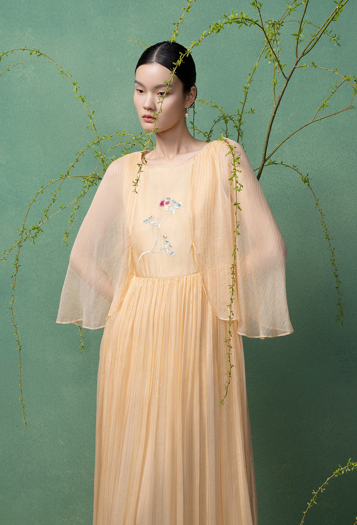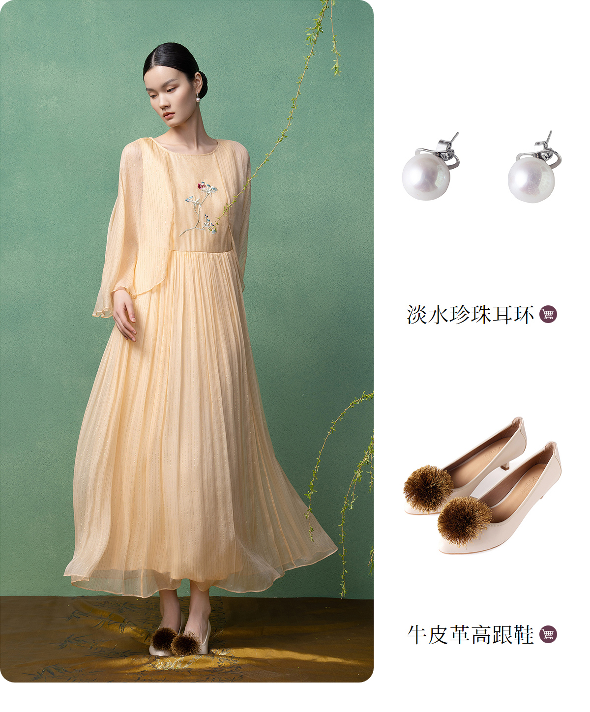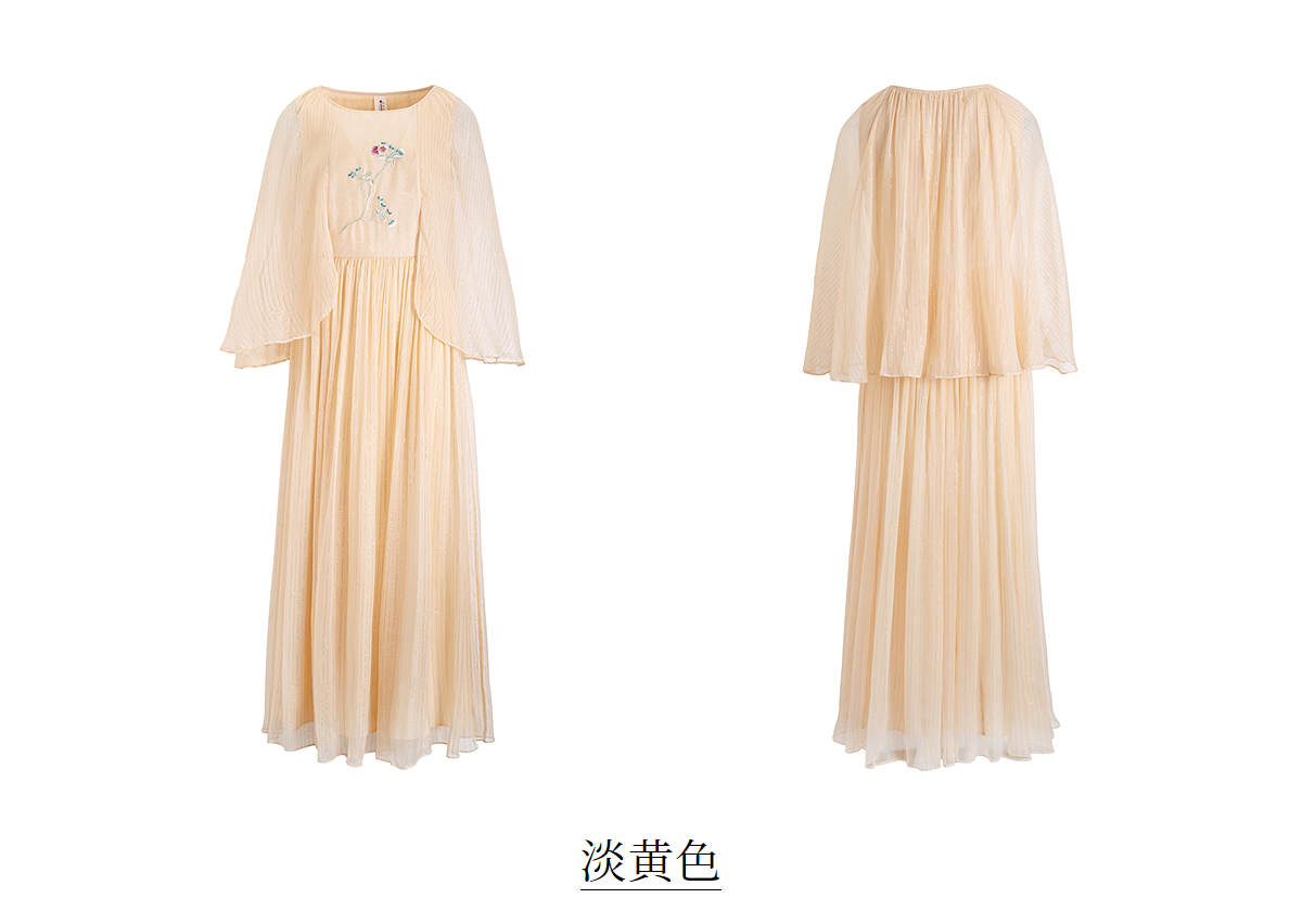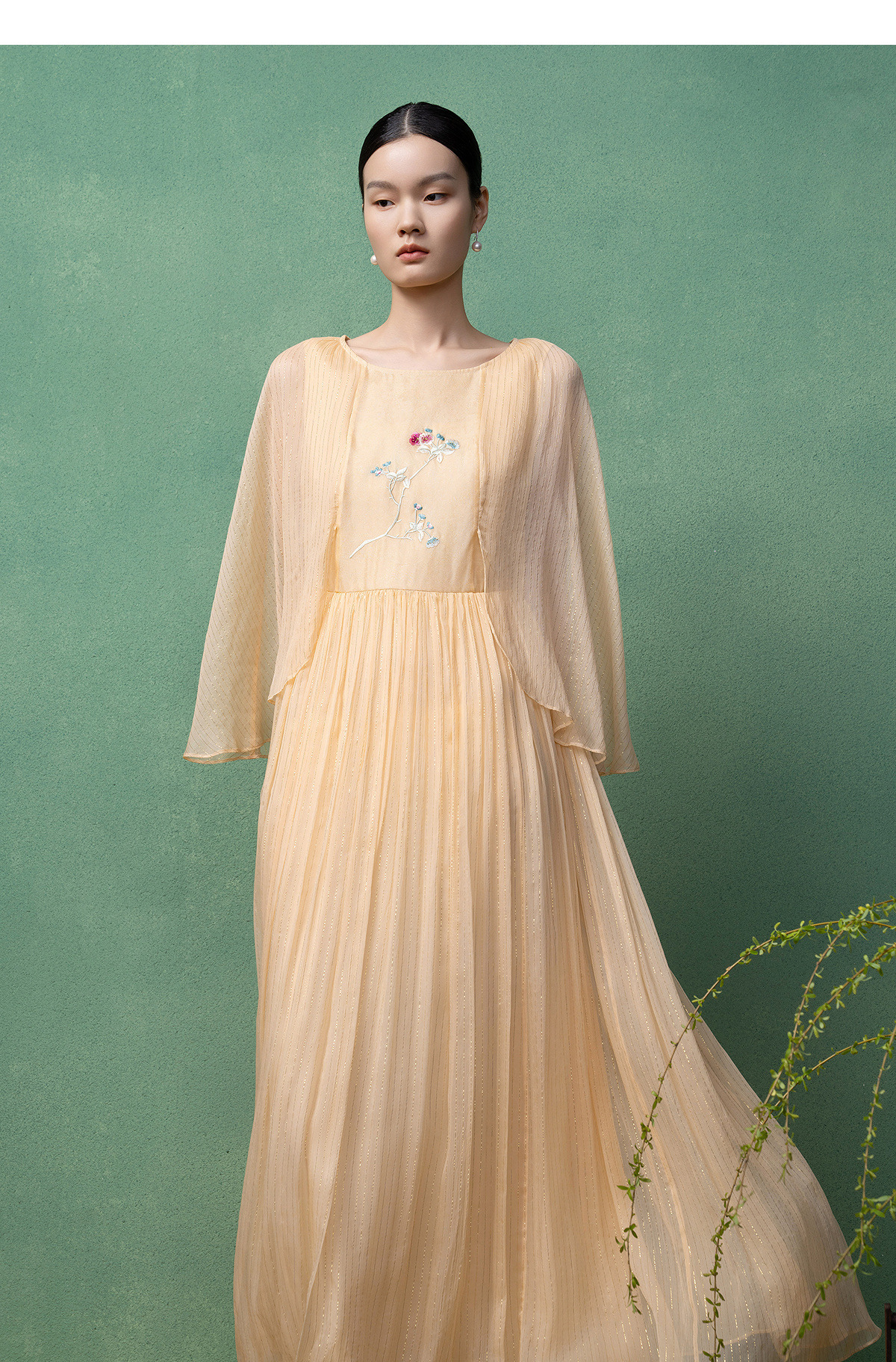 【林栖设计小店】桑蚕丝金丝披肩连衣裙优雅绣花2025夏季新款长裙女1952101